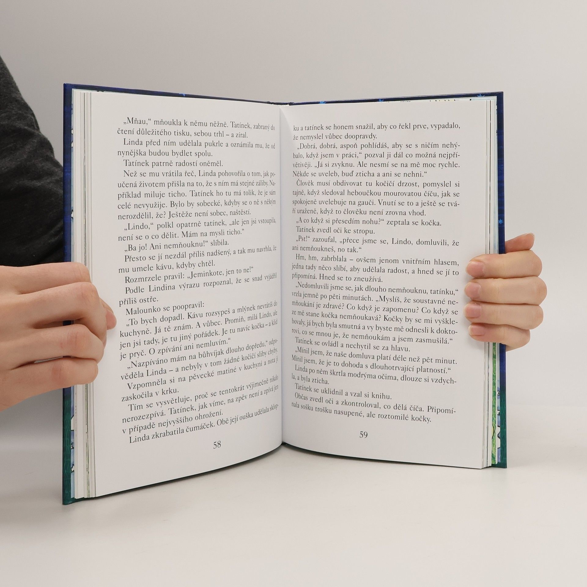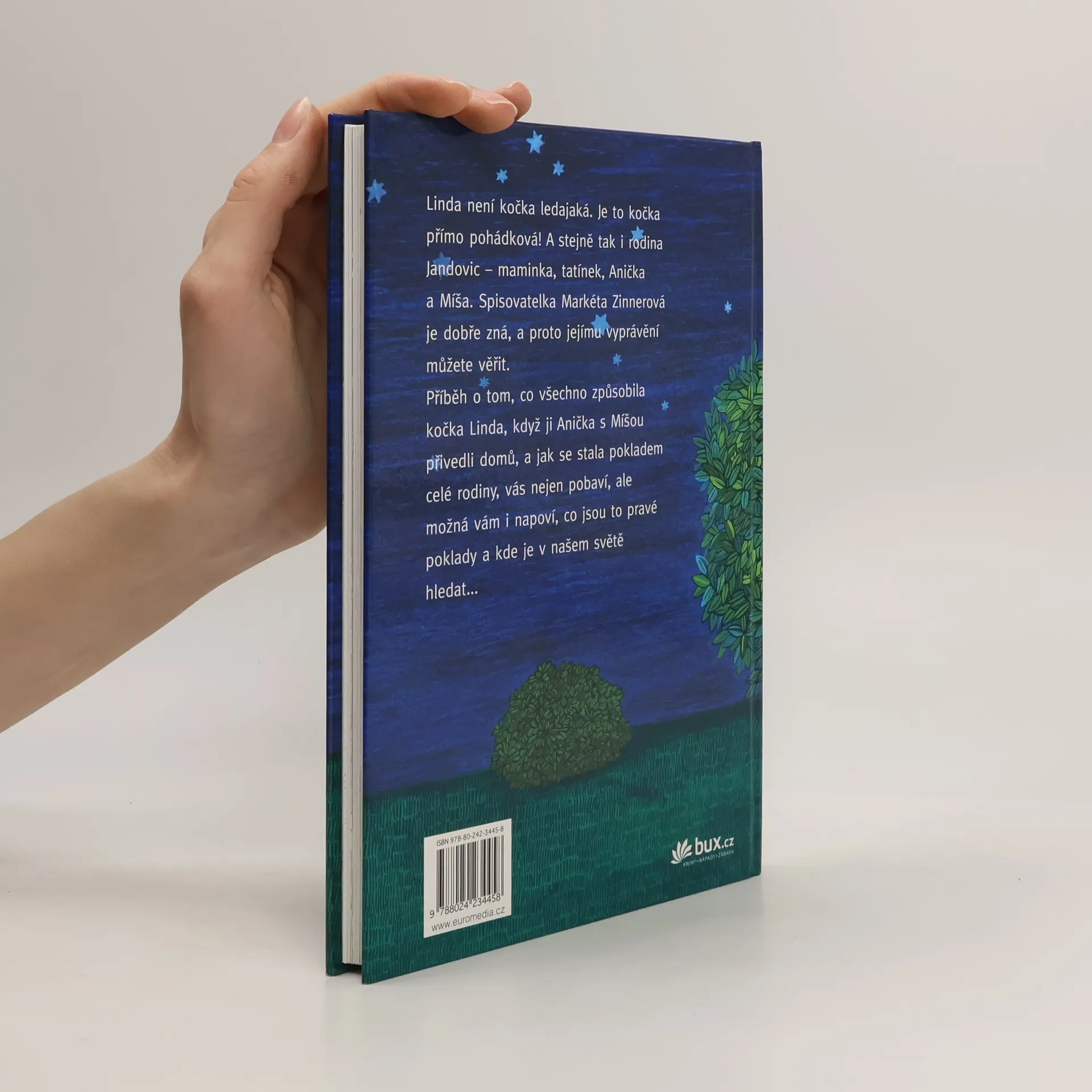Veselé vyprávění pro děti od 7 let - o tom, co všechno způsobil příchod kočky Lindy do Jandovic rodiny. Linda není jen tak nějaká kočka. Mluví, má vychování, umí psát a vůbec - je přímo pohádková. Anička, Míša, jejich maminka a (po počátečních výhradách) i tatínek pro ni mají plné pochopení, ba přímo slabost a tak se rozvine celý ohňostroj nápadů a her. A ten poklad - je to opravdu Linda? Nebo to nejdůležitější a nejdražší vězí úplně jinde?