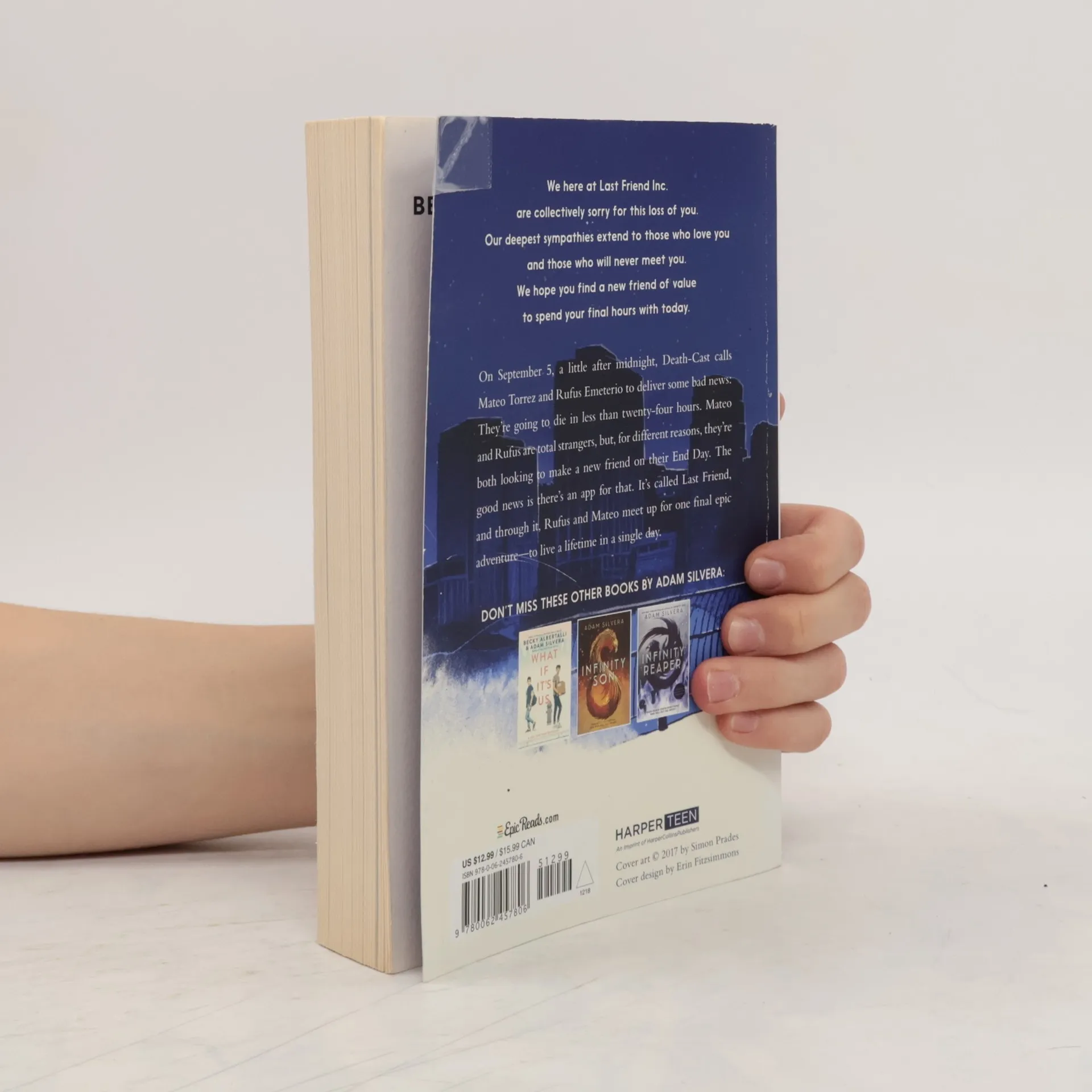Adam Silvera reminds us that there’s no life without death and no love without loss in this devastating yet uplifting story about two people whose lives change over the course of one unforgettable day. New York Times bestseller * 4 starred reviews * A School Library Journal Best Book of the Year * A Kirkus Best Book of the Year * A Booklist Editors' Choice of 2017 * A Bustle Best YA Novel of 2017 * A Paste Magazine Best YA Book of 2017 * A Book Riot Best Queer Book of 2017 * A Buzzfeed Best YA Book of the Year * A BookPage Best YA Book of the Year On September 5, a little after midnight, Death-Cast calls Mateo Torrez and Rufus Emeterio to give them some bad news: They’re going to die today. Mateo and Rufus are total strangers, but, for different reasons, they’re both looking to make a new friend on their End Day. The good news: There’s an app for that. It’s called the Last Friend, and through it, Rufus and Mateo are about to meet up for one last great adventure—to live a lifetime in a single day. In the tradition of Before I Fall and If I Stay, They Both Die at the End is a tour de force from acclaimed author Adam Silvera, whose debut, More Happy Than Not, the New York Times called “profound.”