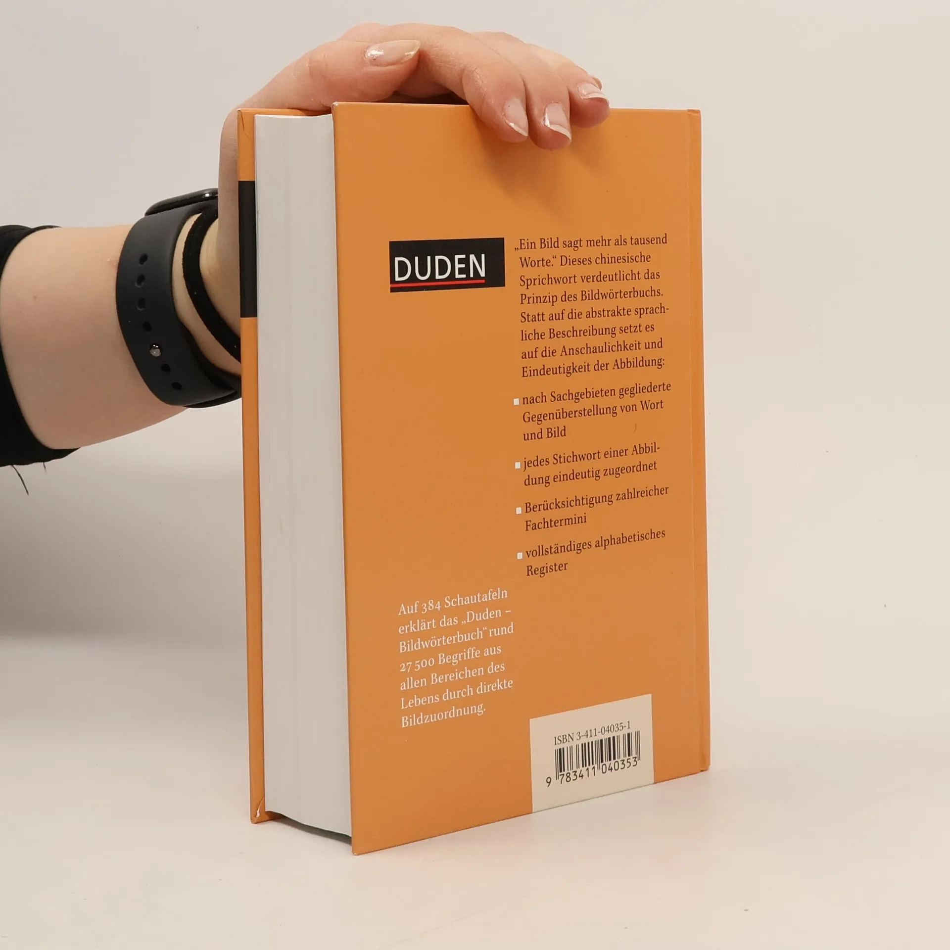 In diesem Bildwörterbuch, das 1935 erstmals erschien, werden auf Schautafel - gegliedert nach Sachgebieten - über 27000 Begriffe des Alltagslebens erklärt. Die Neubearbeitung (zuletzt 4. Auflage 1997: BA 1/98, damals nur in der Orthographie geändert gegenüber der 3. Auflage 1992: BA 5/93) hat vor allem neue Entwicklungen im Bereich der Technik berücksichtigt. Neue Tafeln wurden eingefügt, alte entfernt. Die Neuauflage sollte - auch für Deutschlerner - in allen Bibliotheken zur Verfügung stehen. (1 A, S)