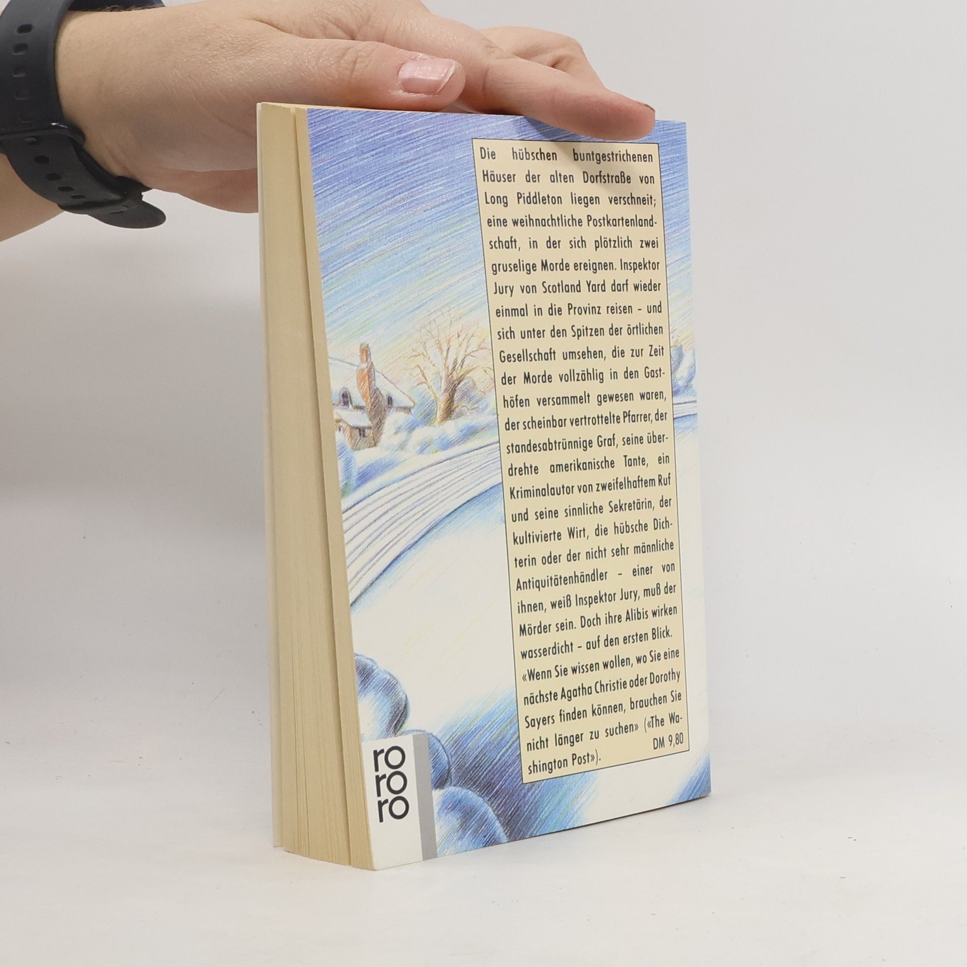 Die hübschen buntgestrichenen Häuser der alten Dorfstraße von Long Piddleton liegen verschneit; eine weihnachtliche Postkartenlandschaft, in der sich plötzlich zwei gruselige Morde ereignen. Inspektor Jury von Scotland Yard darf wieder einmal in die Provinz reisen – und sich unter den Spitzen der örtlichen Gesellschaft umsehen, die zur Zeit der Morde vollzählig in den Gasthöfen versammelt gewesen waren, der scheinbar vertrottelte Pfarrer, der standesabtrünnige Graf, seine überdrehte amerikanische Tante, ein Kriminalautor von zweifelhaftem Ruf und seine sinnliche Sekretärin, der kultivierte Wirt, die hübsche Dichterin oder der nicht sehr männliche Antiquitätenhändler – einer von ihnen, weiß Inspektor Jury, muss der Mörder sein. Doch ihre Alibis wirken wasserdicht – auf den ersten Blick.