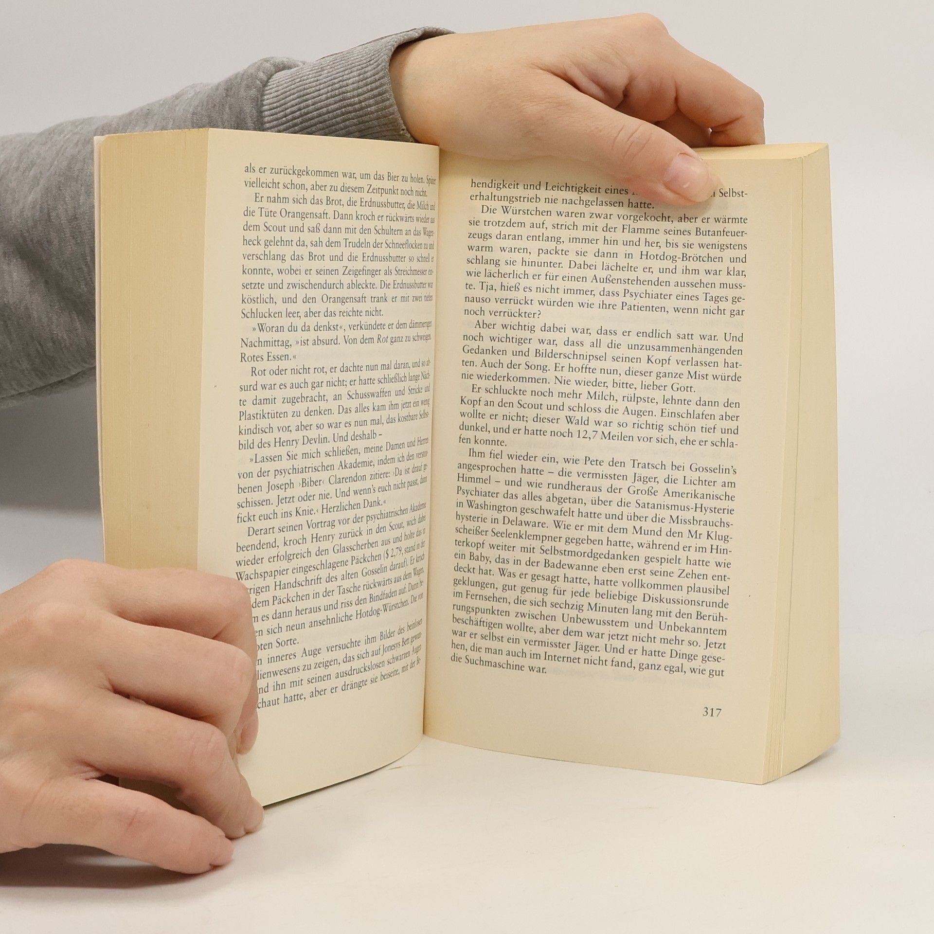 Seit Jahren wird behauptet, Stephen King habe sich mit Es selbst übertroffen und seitdem kein ähnlich herausragendes Werk mehr geschrieben. In seinem neuen Roman knüpft er an den Mythos um das Städtchen Derry an, was den Vergleich nahelegt: Kann Duddits mit Es konkurrieren? Henry, Jonesy, Biber und Pete sind enge Freunde und besuchen dieselbe Schule. Ihr besonderer Freund Duddits, ein Junge mit Down-Syndrom, wurde einst von ihnen vor älteren Mitschülern beschützt und verbringt seither viel Zeit mit ihnen. Obwohl Duddits einen niedrigen IQ hat, ist er witzig und liebenswert und besitzt eine telepathische Begabung, die auch auf seine Freunde übergreift und ihre enge Verbindung stärkt, ohne dass sie sich dessen bewusst sind. 25 Jahre später haben sich ihre Wege getrennt, doch jeden November gehen sie in den Wäldern von Maine gemeinsam auf die Jagd. Als sie in ihrer Hütte eingeschneit werden, ignorieren sie die Radiomeldungen über seltsame Lichter am Himmel, bis eine Stimme aus einem Hubschrauber die Gegend zum Sperrgebiet erklärt. Von einer geheimnisvollen Epidemie ist die Rede, und Schüsse sowie Explosionen ertönen aus der Ferne. Für die Freunde beginnt ein Albtraum, der sie an die Grenzen ihres Vorstellungsvermögens führt. Kings Sprache ist menschlich und berührend, aber auch vulgär, was der Erzählung eine enorme Durchschlagskraft verleiht. Die fesselnde Handlung und das Schicksal der Figuren fesseln den Leser auf jeder Seite.