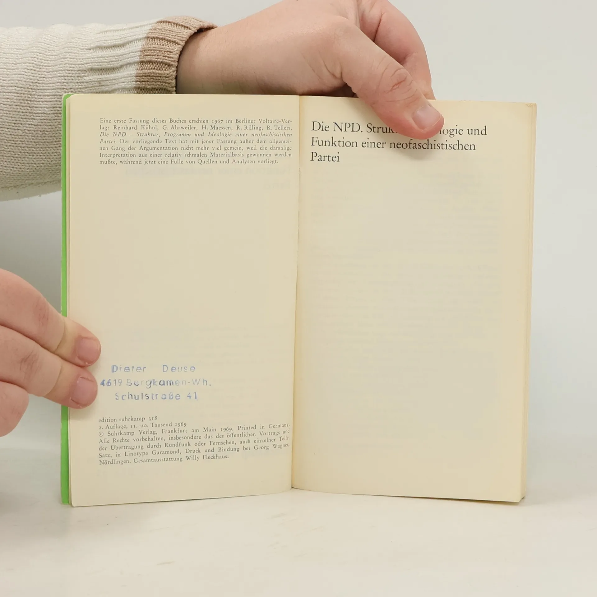 Die NPD. Struktur, Ideologie und Funktion einer neofaschistischen Partei, Reinhard Kühnl, Christine Sager, Rainer Rilling