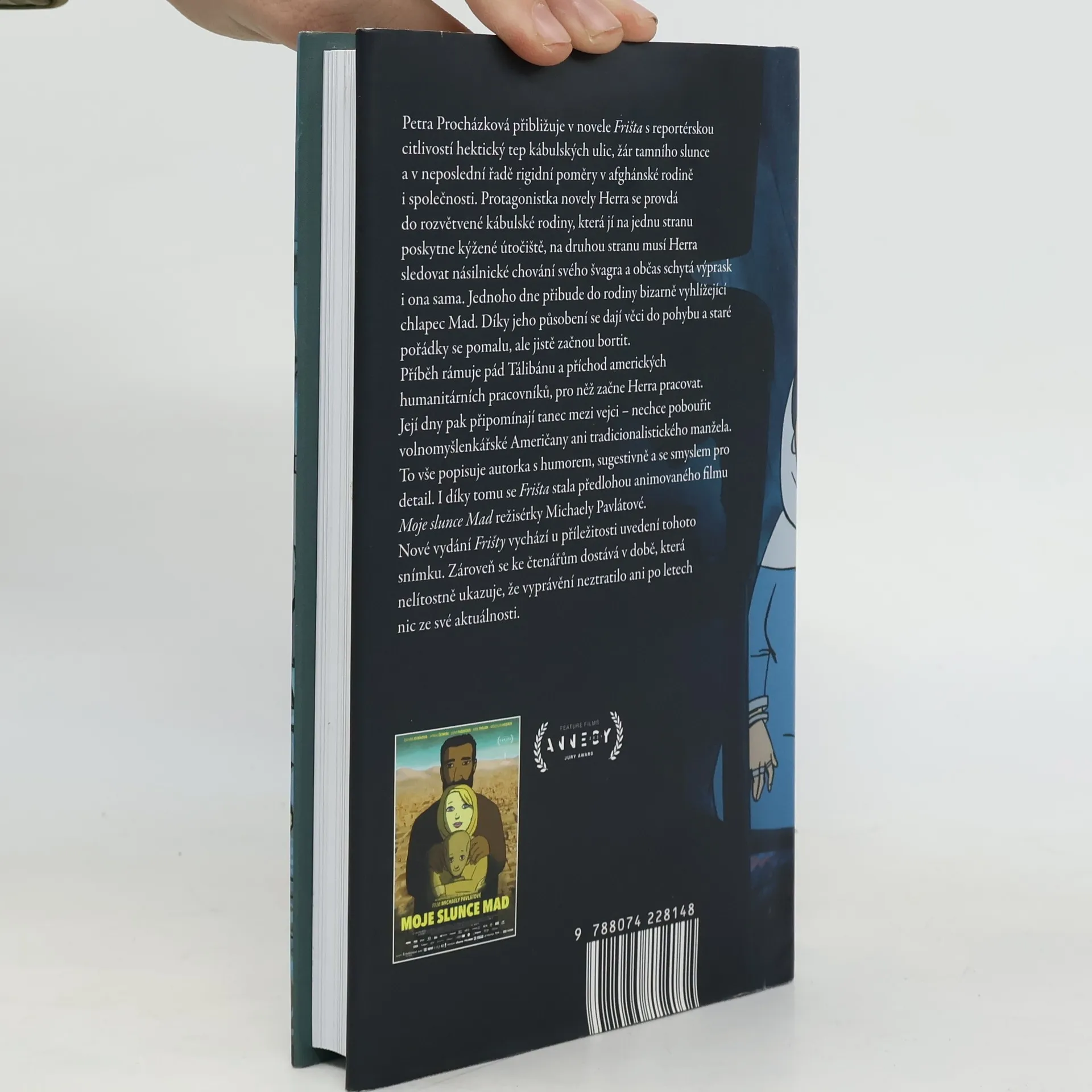 Petra Procházková přibližuje v novele Frišta s reportérskou citlivostí hektický tep kábulských ulic, žár tamního slunce a v neposlední řadě rigidní poměry v afghánské rodině i společnosti. Protagonistka novely Herra se provdá do rozvětvené kábulské rodiny, která jí na jednu stranu poskytne kýžené útočiště, na druhou stranu musí Herra sledovat násilnické chování svého švagra a občas schytá výprask i ona sama. Jednoho dne přibude do rodiny bizarně vyhlížející chlapec Mad. Díky jeho působení se dají věci do pohybu a staré pořádky se pomalu, ale jistě začnou bortit. Příběh rámuje pád Tálibánu a příchod amerických humanitárních pracovníků, pro něž začne Herra pracovat. Její dny pak připomínají tanec mezi vejci – nechce pobouřit volnomyšlenkářské Američany ani tradicionalistického manžela. To vše popisuje autorka s humorem, sugestivně a se smyslem pro detail. I díky tomu se Frišta stala předlohou animovaného filmu Moje slunce Mad režisérky Michaely Pavlátové. Nové vydání Frišty vychází u příležitosti uvedení tohoto snímku. Zároveň se ke čtenářům dostává v době, která nelítostně ukazuje, že vyprávění neztratilo ani po letech nic ze své aktuálnosti.