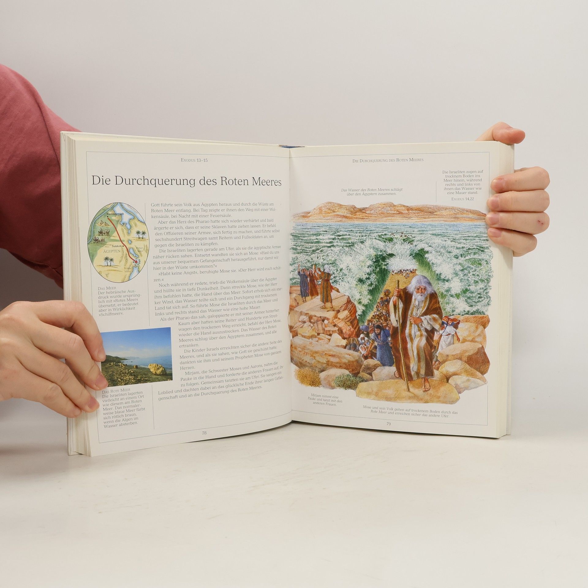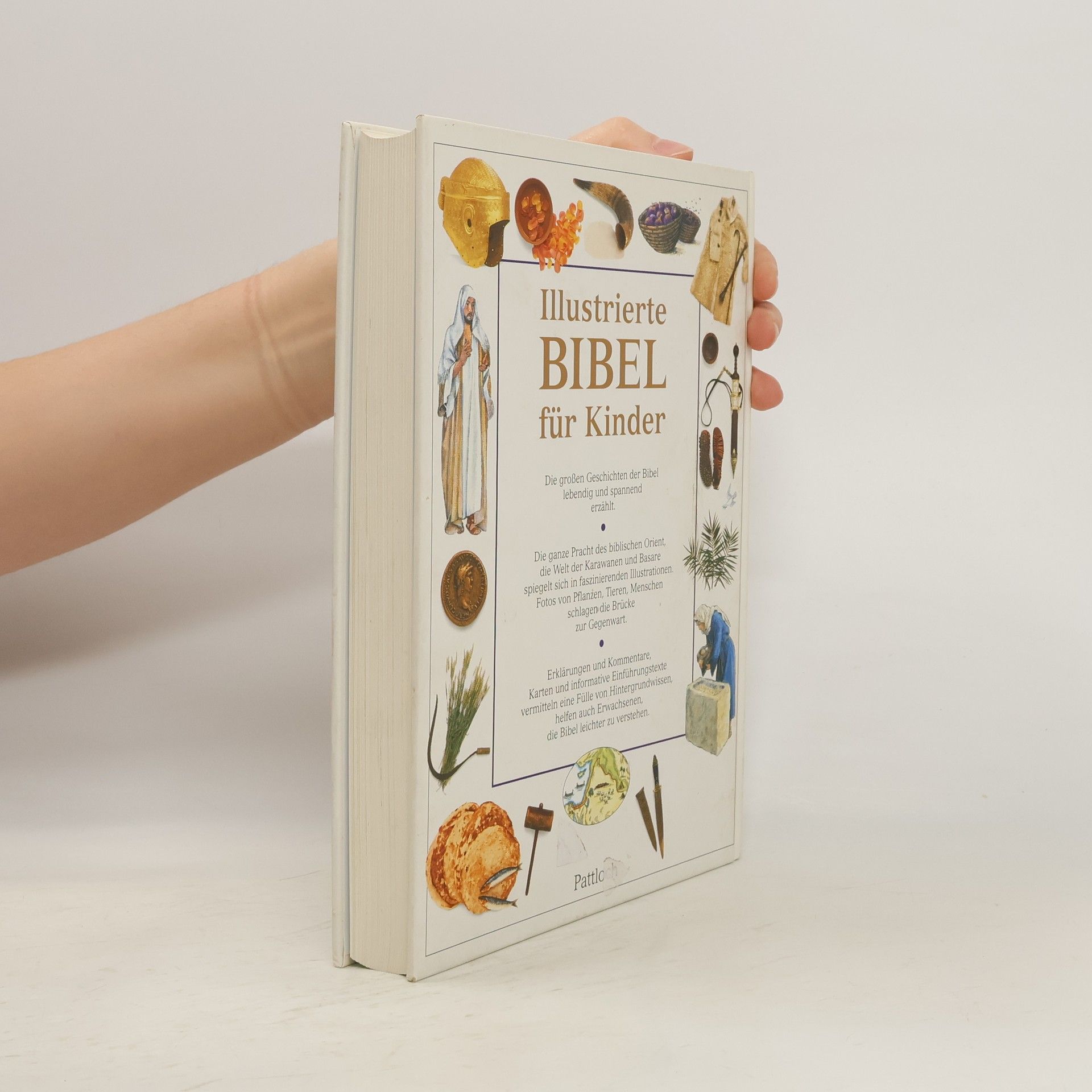 Die Geschichten der Bibel machen alle Kinder neugierig: Wie konnte Moses die Israeliten trockenen Fußes durch das Rote Meer führen? Wo liegt dieses Meer und wie sieht es heute aus? Auf über 300 Seiten finden Kinder Antworten auf ihre Fragen. Geschichten aus dem Neuen und Alten Testament zeigen in vielen Bildern, was damals geschah. Dazu gibt es prächtige Landkarten, Detail-Skizzen und zahlreiche Hintergrunds-Informationen: zum Beispiel was Frauen zur Zeit Jesu kochten. Oder wie eine Öllampe funktioniert. Besonders interessant sind auch die vielen Fotos aus heutigen Zeiten, die eine Brücke zur Gegenwart schlagen. Karawanen und Basare, Pflanzen, Tiere und die Menschen in ihrer traditionellen Kleidung: die ganze Pracht des biblischen Orient erweckt dieses Buch zu neuem Leben. Ein einzigartiges Konzept für eine Kinder-Bibel, das auch Erwachsene mit seiner Fülle an interessanten Kommentaren begeistert!