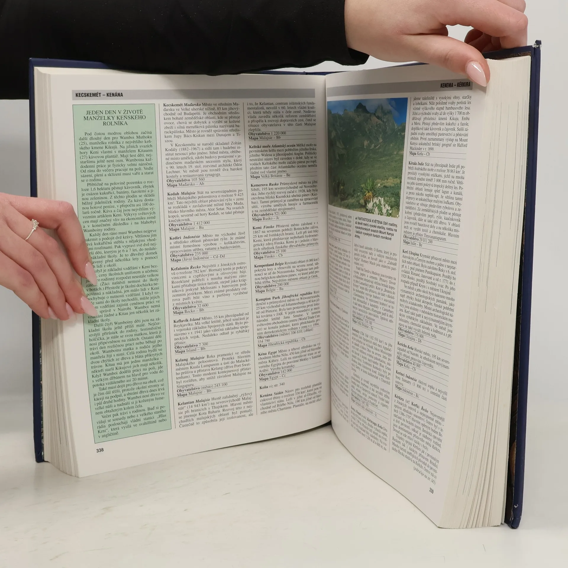Dočtete se v ní o více než 6 500 pamětihodností naší planety, a to jak přírodních, tak vytvořených člověkem. Získáte správné povědomí o tom, kde leží místa, o kterých se hovoří v denních zprávách, kde se nacházejí oblasti, které přitahují mimořádný zájem turistů, kraje, které často postihují přírodní neštěstí, nebo významná naleziště přírodních zdrojů. Najdete zde například odpověď na otázky: Jak žijí lidé v různých částech světa a jaká je jejich kultura a tradice? Jaký mají ekonomický potenciál jednotlivé země a jejich hlavní města a jací jsou lidé, kteří v nich žijí? Která jsou nejméně probádaná místa na Zemi? Proč a jak vznikají orkány? Kde se nacházejí nejvyšší a nejširší vodopády? Jak vznikly neuvěřitelné památky z dob dávných civilizací? Knížka obsahuje 7 500 hesel, popis 193 zemí, více než 250 barevných vyobrazení a 174 barevných map.... celý text