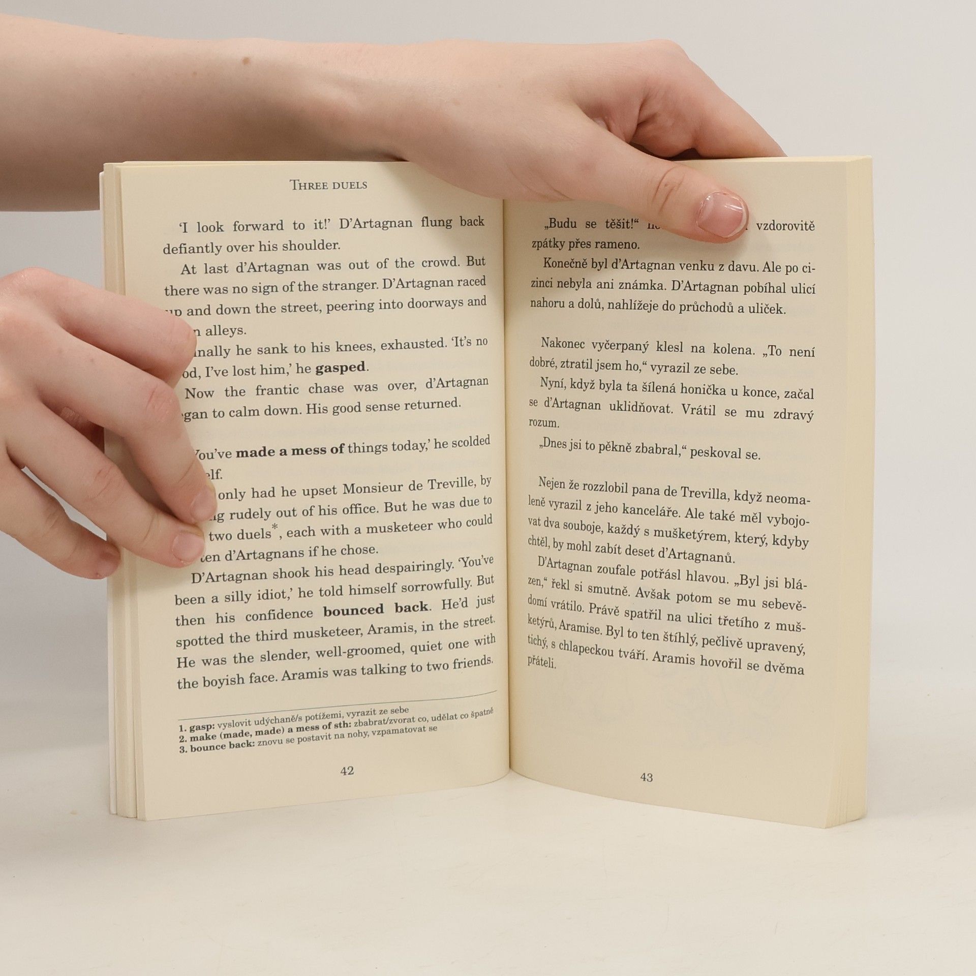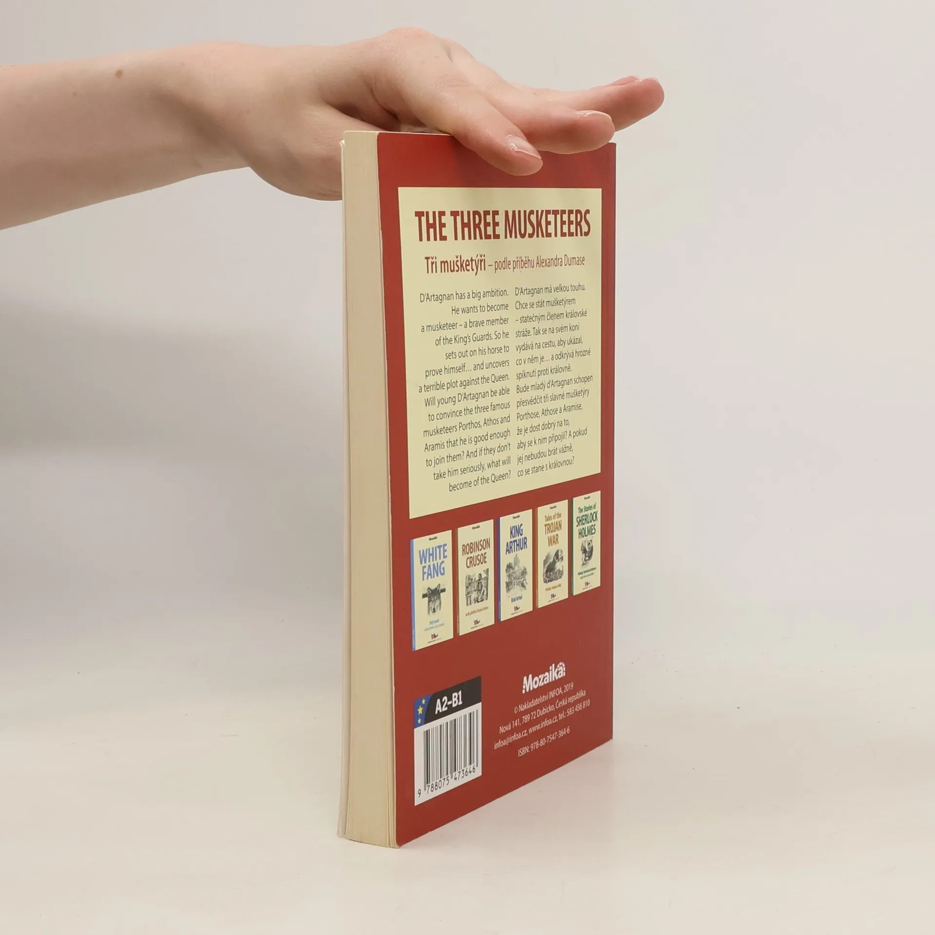 Anglicko-český zjednodušený text. A2-B1. Tři mušketýři podle příběhu Alexandra Dumase. D'Artagnan má velkou touhu. Chce se stát mušketýrem – statečným členem královské stráže. Tak se na svém koni vydává na cestu, aby ukázal, co v něm je... a odkrývá hrozné spiknutí proti královně. Bude mladý D'Artagnan schopen přesvědčit tři slavné mušketýry Porthose, Athose a Aramise, že je dost dobrý na to, aby se k nim připojil? A pokud jej nebudou brát vážně, co se stane s královnou?