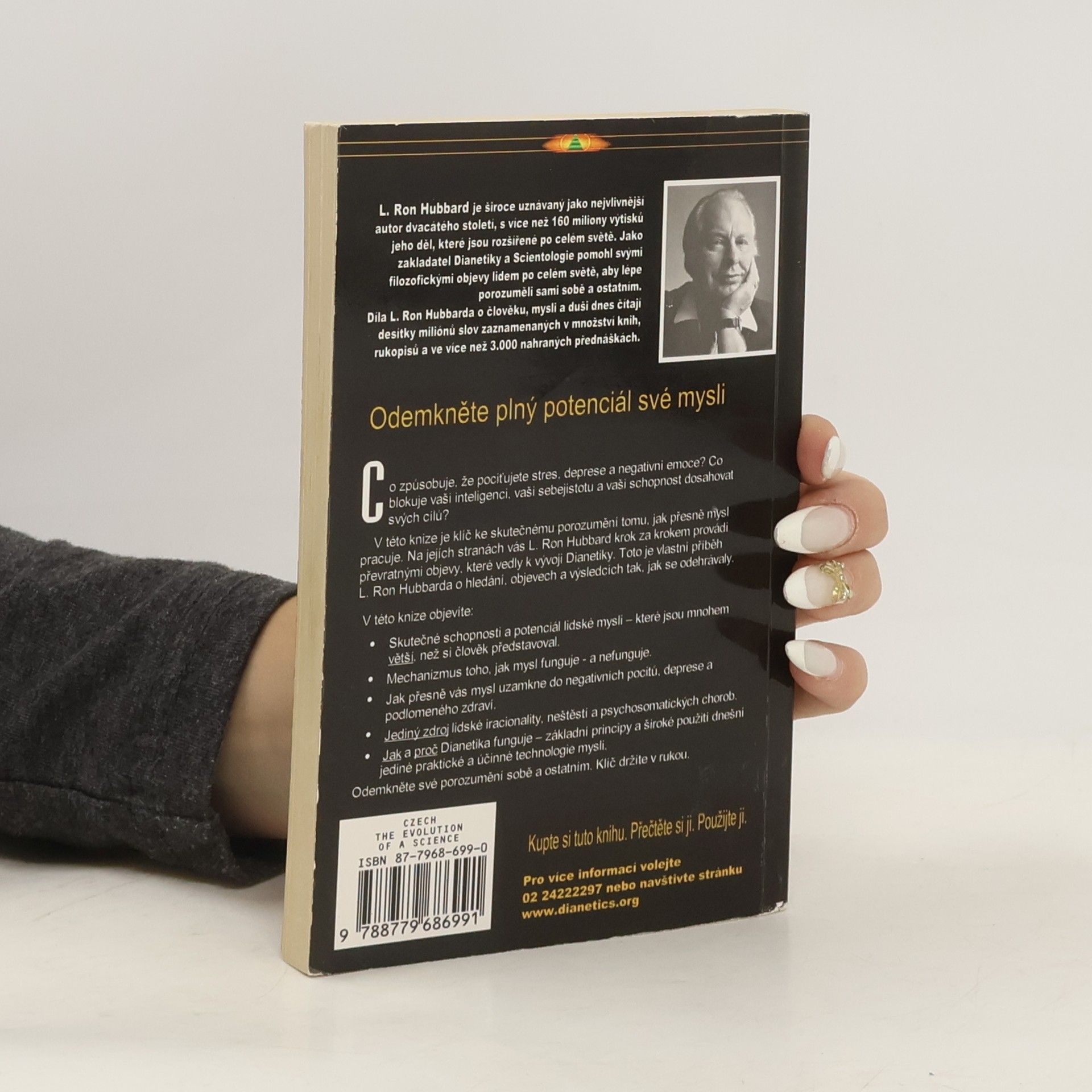 Odhadujeme, že využíváme méně než deset procent potenciálu své mysli. Co nám brání v rozvíjení a používání jejího plného potenciálu? Kniha Dianetika: Vývoj vědy je neuvěřitelné vyprávění L. Rona Hubbarda o tom, jak objevil reaktivní mysl a jak vyvinul základy k odhalení jejích tajemství.