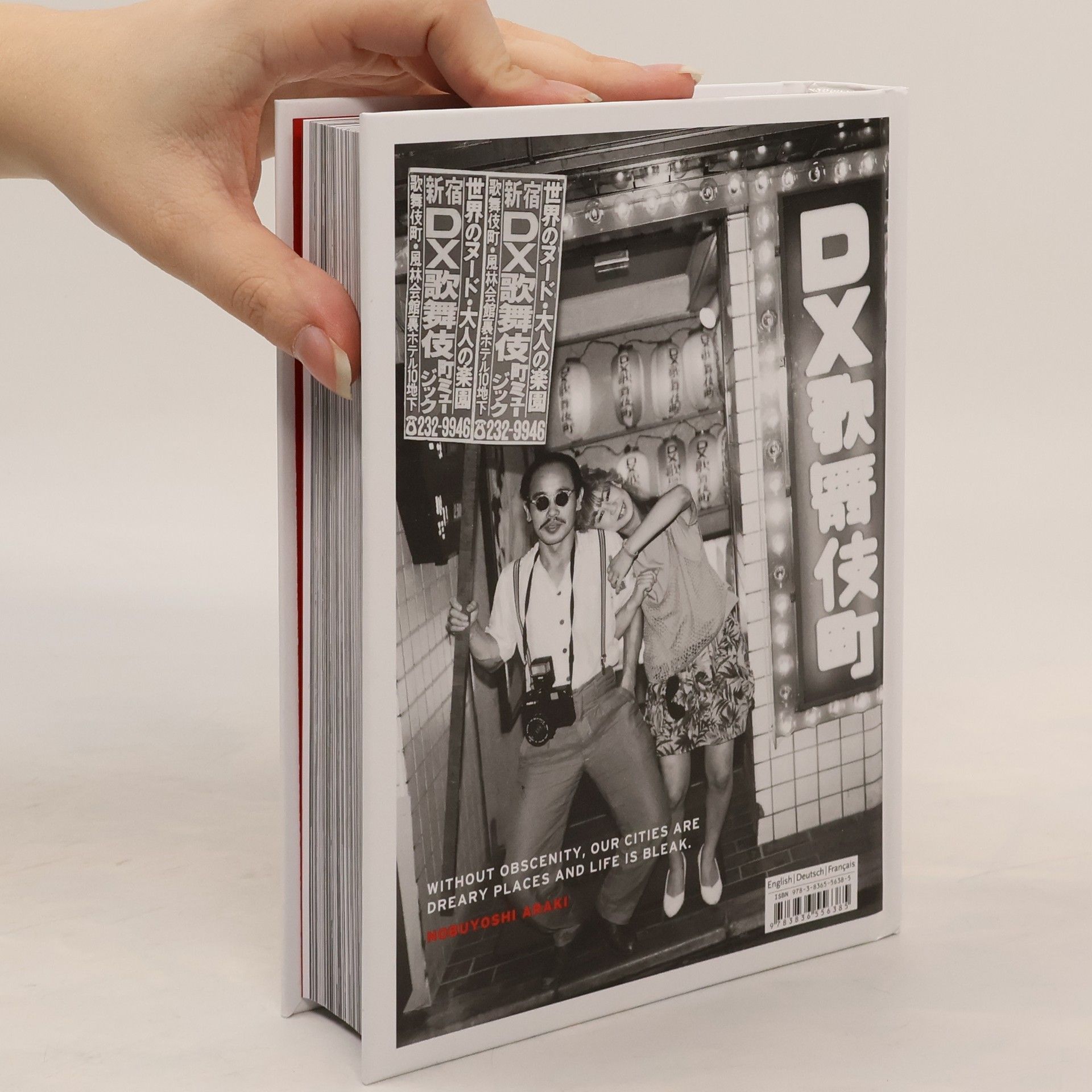 Alles begann 1978 in einem Café nahe Kyoto, wo die Kellnerinnen keine Schlüpfer trugen. Rasch entstanden ähnliche Lokale im ganzen Land, und Männer bezahlten das Dreifache für einen Kaffee, serviert von unbekleideten Frauen. Bald darauf etablierte sich der schlüpferlose „Massage“-Salon, und der Konkurrenzkampf führte zu immer bizarreren erotischen Dienstleistungen. Dazu gehörten Särge, in die man nackt steigen konnte, um unsittlich berührt zu werden, sowie S-Bahn-Interieurs für Fetischisten des öffentlichen Nahverkehrs. Ein einfaches Konzept bot der Tokioter Club „Lucky Hole“, wo Kunde und Hostess durch eine Sperrholzplatte mit Loch getrennt waren. In seinem Buch dokumentiert Nobuyoshi Araki die Blütezeit Japans Sexindustrie mit über 800 Fotografien von Menschen, die im Rotlichtviertel Shinjuku Zerstreuung suchten oder anboten, bis ein Gesetz 1985 viele Sexclubs schließen ließ. Spiegelwände, Laken, Käfige und Bondage-Utensilien sind die Requisiten dieser vergangenen Welt ungezügelter Ausschweifungen, die Araki mit Humor und Poesie beobachtet und hinterfragt.