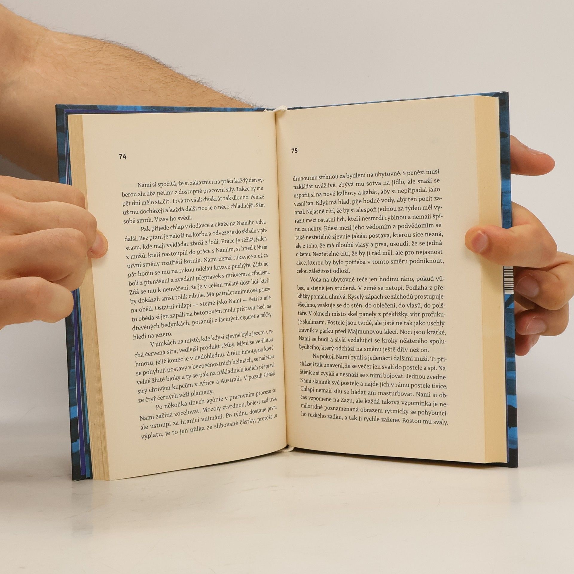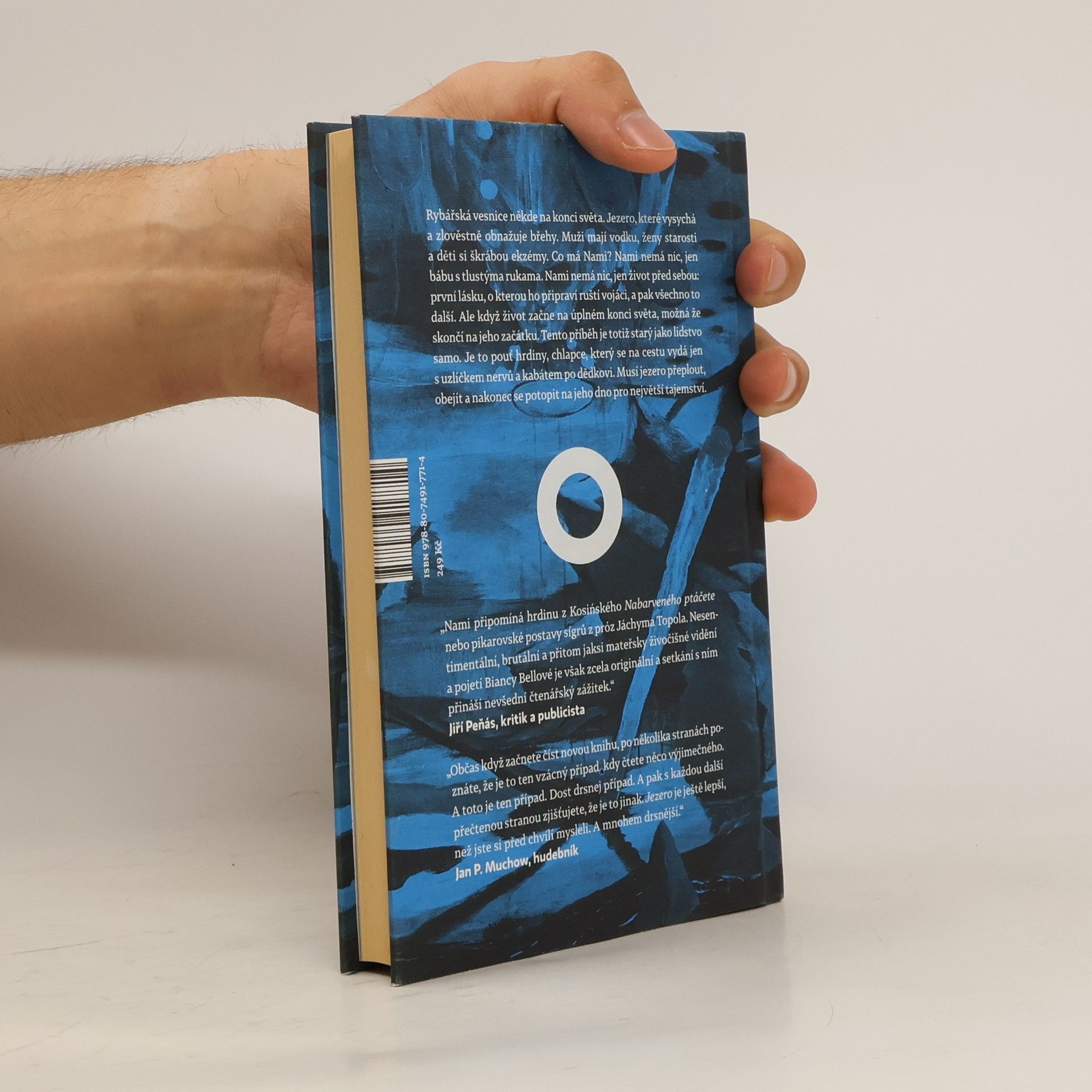 Příběh ze současnosti starý jako lidstvo samo. Rybářská vesnice někde na konci světa, u jezera, které vysychá a zlověstně vyhrnuje břehy. Muži mají vodku, ženy starosti a děti si škrábou ekzémy. Co má Nami? Nami nemá nic — jen bábu s tlustýma rukama. Nami nemá nic, jen život před sebou: první lásku, o kterou ho připraví ruští vojáci, a pak to všechno další. Raději na to nemyslet. Ale když život začne na úplném konci světa, možná že skončí na jeho začátku. Tenhle příběh je totiž starý jako lidstvo samo. Je to pouť hrdiny, chlapce, který na cestu vyráží jen s uzlíčkem nervů a kabátem po dědkovi. Musí do světa, aby hledal, a vrátit se domů, aby našel. Musí jezero přeplout, obkroužit a nakonec se potopit na jeho dno pro největší tajemství. Bianca Bellová napsala brilantní novelu, která se podobá i nepodobá jejím předchozím knihám. Zůstává syrovost vidění, přesný a úsečný jazyk. Ale tentokrát se ocitáme v úplně jiném světě, hutnějším, hlubším, osudovějším. Teprve zde jako by do sebe vše zapadlo. Jezero svými ledovými vodami svírá útroby.