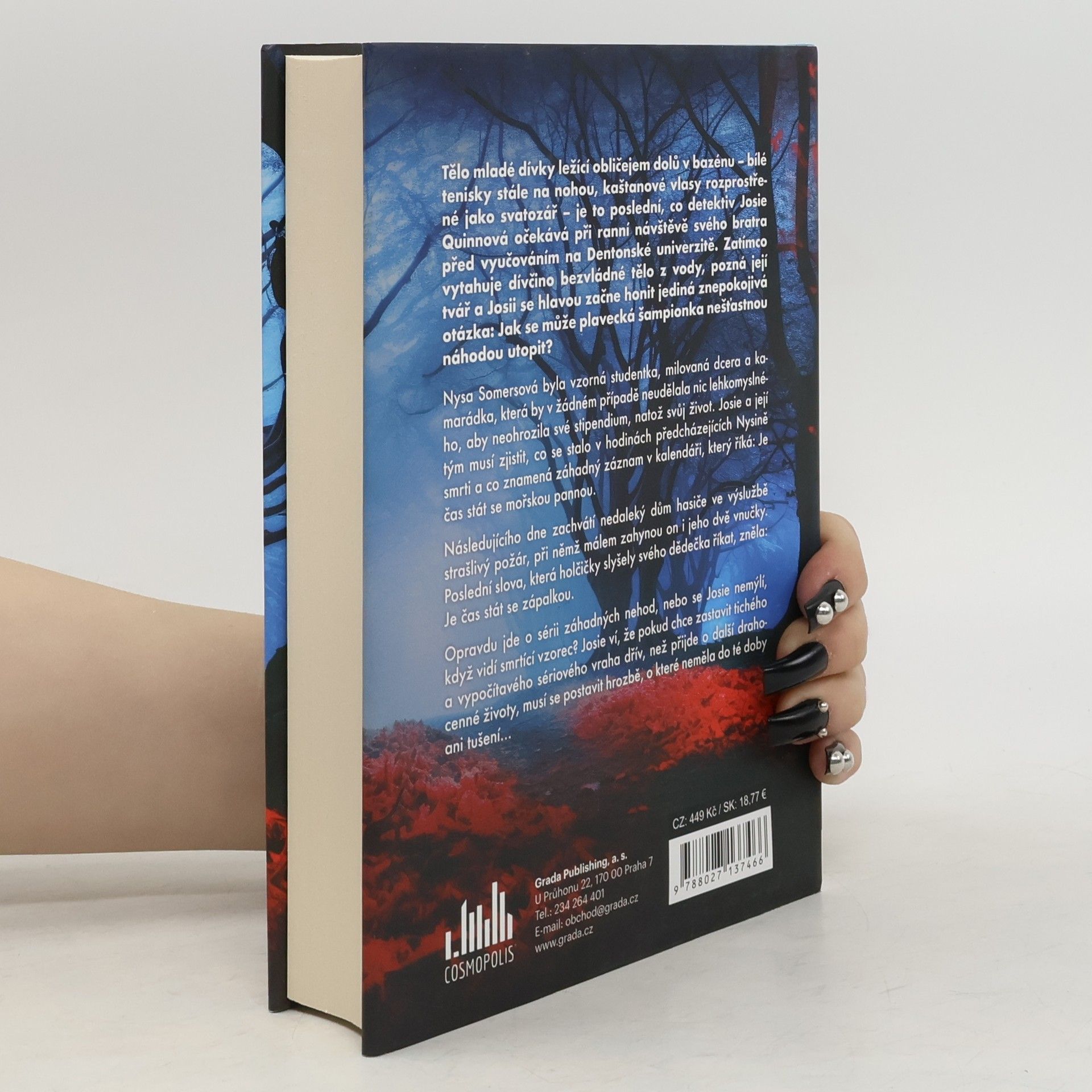 Tělo mladé dívky ležící obličejem dolů v bazénu je to poslední, co detektiv Josie Quinnová očekává při ranní návštěvě svého bratra na Dentonské univerzitě. Když však pozná dívčinu tvář, honí se Josii hlavou jediná otázka: Jak se může plavecká šampionka nešťastnou náhodou utopit? Následujícího dne zachvátí nedaleký dům hasiče ve výslužbě strašlivý požár, při němž málem zahyne on i jeho dvě vnučky. Opravdu jde o sérii záhadných úmrtí, nebo se Josie nemýlí, když vidí smrtící vzorec?