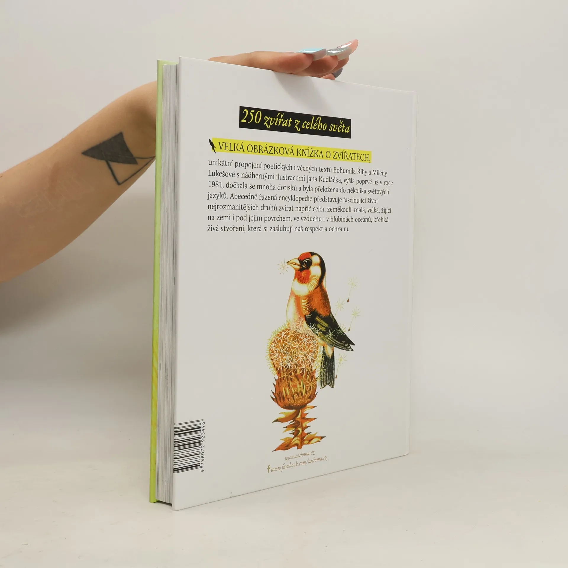 250 zvířat z celého světa. Velká obrázková knížka o zvířatech, unikátní propojení poetických i věcných textů Bohumila Říhy a Mileny Lukešové s nádhernými ilustracemi Jana Kudláčka, vyšla poprvé už v roce 1981, dočkala se mnoha dotisků a byla přeložena do několika světových jazyků. Abecedně řazená encyklopedie představuje fascinující život nejrozmanitějších druhů zvířat napříč celou zeměkoulí: malá, velká, žijící na zemi i pod jejím povrchem, ve vzduchu i v hlubinách oceánů, křehká živá stvoření, která si zasluhují náš respekt a ochranu.