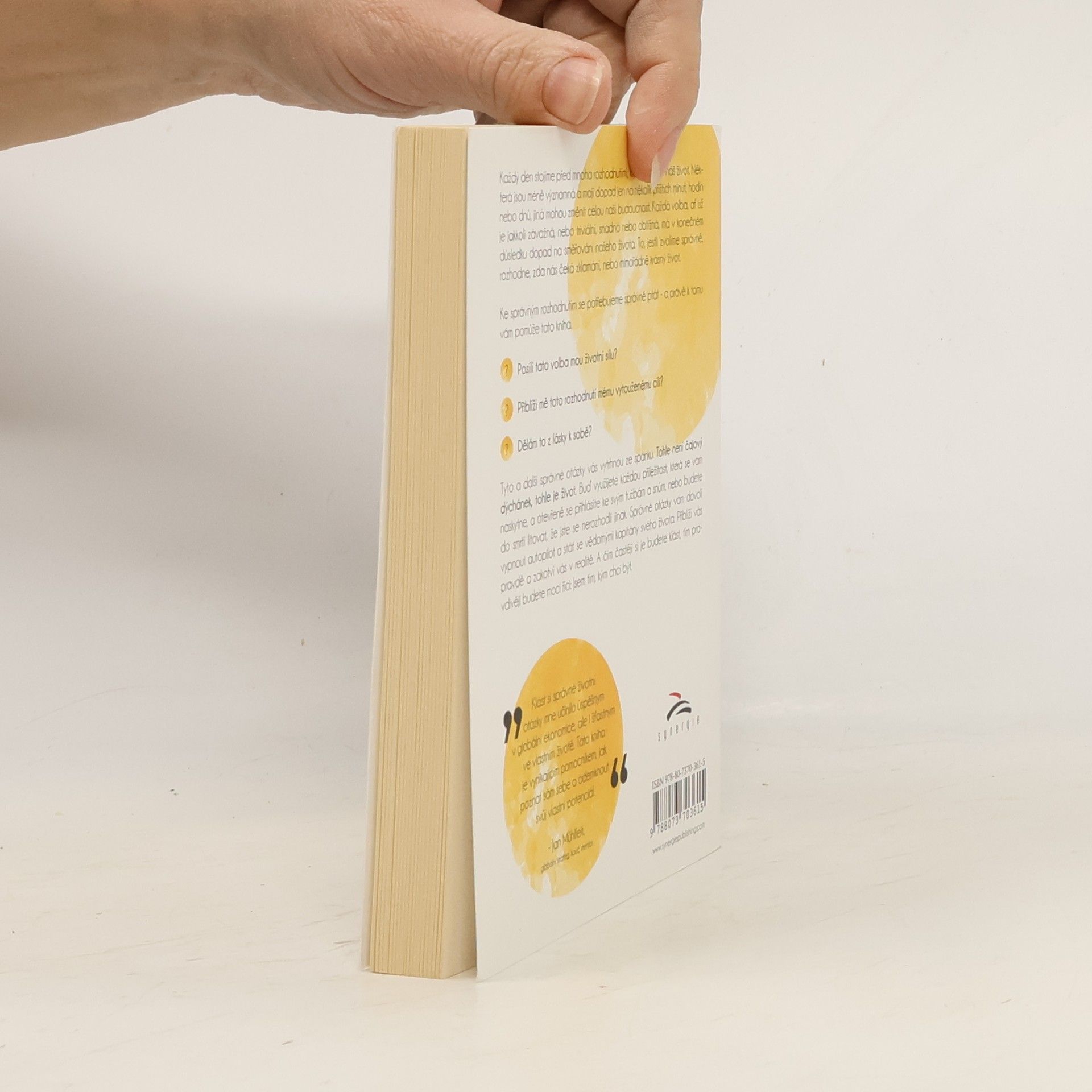 Každý den stojíme před mnoha rozhodnutími, která ovlivňují náš život. Některá jsou méně významná a mají dopad jen na několik příštích minut, hodin nebo dnů, jiná mohou změnit celou naši budoucnost. Každá volba, ať už je jakkoli závažná nebo triviální, snadná nebo obtížná, má v konečném důsledku dopad na směřování našeho života. To, jestli zvolíme správně rozhodne, zda nás čeká zklamání nebo mimořádně krásný život. Ke správným rozhodnutím se potřebujeme správně ptát - a právě k tomu vám pomůže tato kniha. Posílí tato volba mou životní sílu? Přiblíží mě toto rozhodnutí mému vytouženému cíli? Dělám to z lásky k sobě? Tyto a další správné otázky vás vytrhnou ze spánku. Tohle není čajový dýchánek, tohle je život. Buď využijete každou příležitost, která se vám naskytne, a otevřeně se přihlásíte ke svým tužbám a snům, nebo budete do smrti litovat, že jste se nerozhodli jinak. Správné otázky vám dovolí vypnout autopilota a stát se vědomými kapitány svého života. Přiblíží vás pravdě a zakotví vás v realitě. A čím častěji si je budete klást, tím pravdivěji budete moci říci: Jsem tím, kým chci být. Klást si správné životní otázky mne učinilo úspěšným v globální ekonomice, ale i šťastným ve vlastním životě. Tato kniha je vynikajícím pomocníkem jak poznat sám sebe a odemknout svůj vlastní potenciál. - Jan Mühlfeit, globální stratég, kouč, mentor