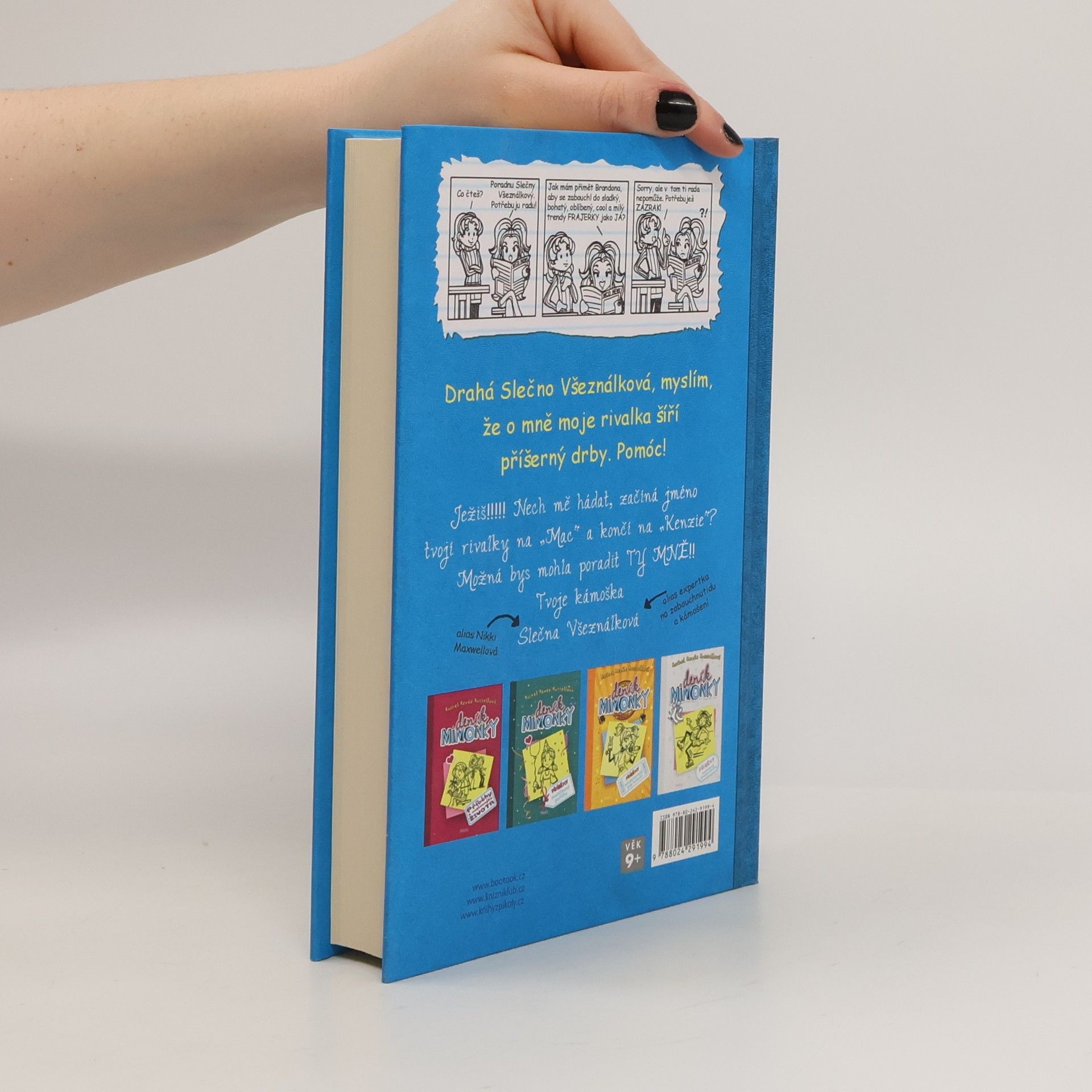 Další kniha humorných deníkových zápisků školačky Nikki, školní mimoňky s velkou dávkou talentu pro výtvarku a trapasy. Nikki je už zase v průšvihu. Její zlomyslná rivalka MacKenzie totiž vyhrožuje, že ve školních novinách vyzradí tajemství, které by mohlo totálně zničit život nejen jí a jejím nejlepším kámoškám, ale dokonce i Brandonovi! Ale Nikki to tak rozhodně nenechá. Aby mohla na MacKenzie dohlídnout, vrhne se na novinařinu i ona a shodou bláznivých okolností skončí jako poradkyně skrytá pod přezdívkou Slečna Všeználková. Jenže její poradna slaví nečekané úspěchy a ona je najednou úplně zavalená prací.