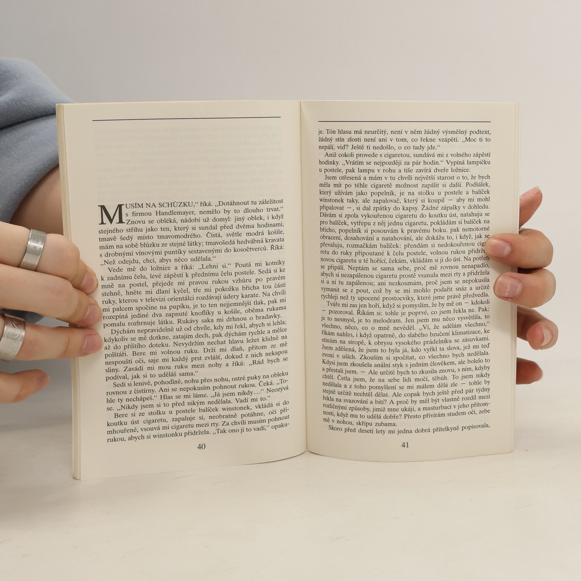 Ano, ten film jste nejspíše viděli. Možná jste ale nevěděli, že byl natočen na základě literární předlohy. A že předlohou knihy byl skutečný příběh. Autobiografický. Elizabeth pracovala jako vysoce postavená manažerka v New Yorku, když se náhodně seznámila se svým osudovým mužem. Jejich vztah byl založen na partnerově dominanci a její bezvýhradné oddanosti, a oba milenci byli zprvu uhranuti tou dokonalostí. O takovém vztahu vždy snili, vlastně to bylo lepší než nejsmělejší představy. Elizabeth se nachází v jakémsi blaženém oparu, a tak vlastně ani nevnímá, že to, co po ní on žádá, je stále nebezpečnější a zvrácenější. A po devíti a půl týdnech Elizabeth zjistí, že ztratila veškerou vládu nad svým tělem i nad svou myslí. Autorka popisuje vlastní zážitky a pocity, jejichž důsledky nesla i dlouho poté, co vztah skončil, a volí k tomu hutný, částečně odosobněný styl, z něhož čtenáře mrazí. Ne, na tuto knihu jen tak nezapomenete.