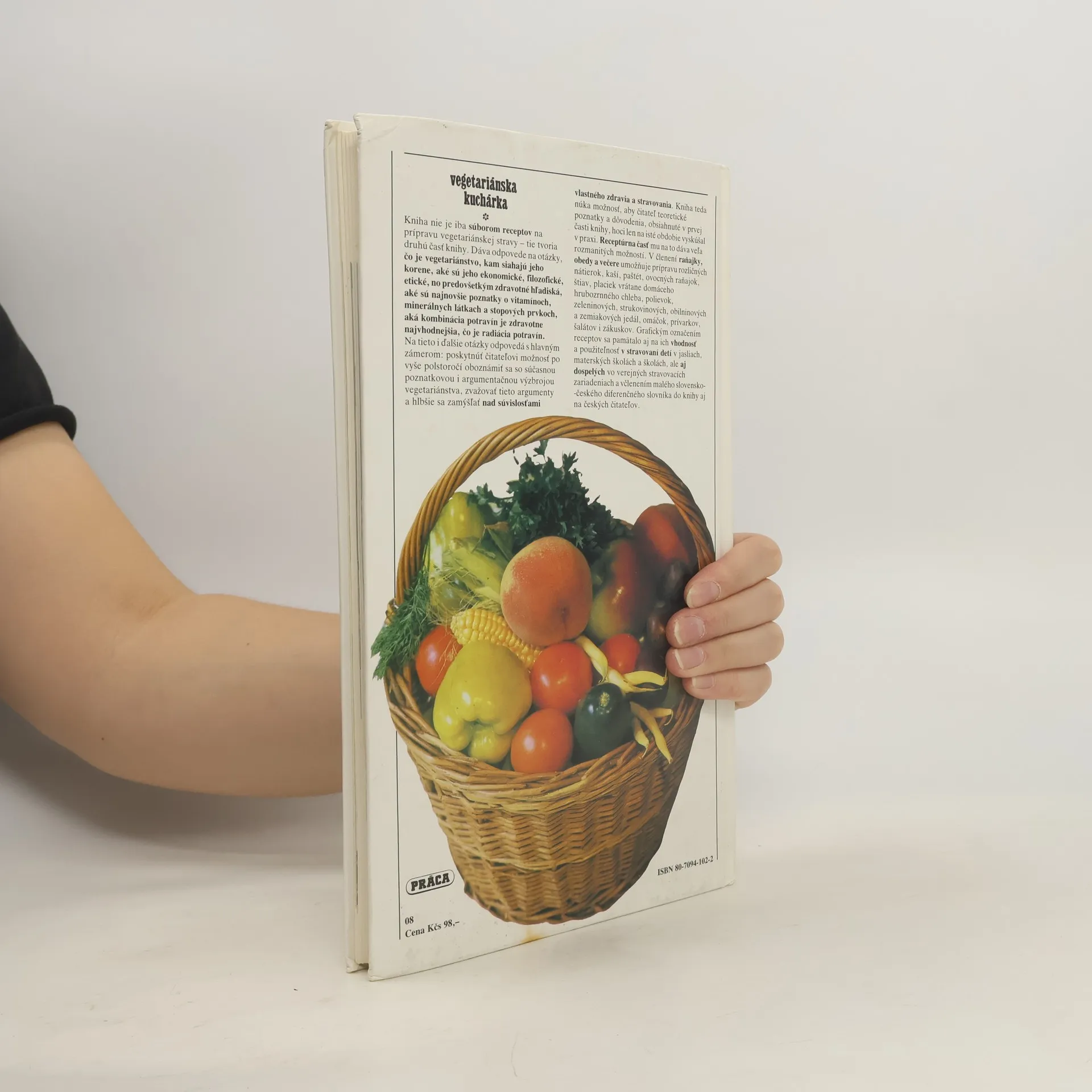 300 receptů, vegetariánství v teorii a v praxi. Kniha není jen souborem receptů na přípravu vegetariánské stravy - ty tvoří druhou část knihy. Dává také odpovědi na otázky co je vegetariánství, kam sahají jeho kořeny, jaká jsou jeho ekonomická, filozofická, etická, ale především zdravotní hlediska, jaké jsou nejnovější poznatky o vitamínech, minerálních látkách a stopových prvcích, jaká kombinace potravin je zdravotně nejvhodnější, co je radiace potravin. Na tyto a další otázky odpovídá s hlavním záměrem: poskytnout čtenáři možnost seznámit se po víc než půlstoletí se současnou poznatkovou a argumentační výzbrojí vegetariánství, zvažovat tyto argumenty a hlouběji se zamýšlet nad souvislostmi mezi vlastním zdravím a stravováním. Kniha tedy nabízí čtenáři možnost vyzkoušet v praxi, třeba jen na určité období, teoretické poznatky a odůvodnění, jež jsou první části knihy. Recepturní část mu k tomu poskytuje mnoho rozmanitých možností. Členění na snídaně, obědy a večeře umožňuje uvést recepty na přípravu různých pomazánek, kaší, paštik, ovocných snídaní, šťáv, placek, také domácího celozrnného chleba, polévek, zeleninových, luštěninových, obilovinových a bramborových jídel, omáček, zadělávaných pokrmů, salátů a zákusků. Grafickým označením receptů se pamatovalo i na vyjádření jejich vhodnosti a použitelnosti v stravování dětí v jeslích, mateřských školách, ale i dospělých ve veřejných stravovacích zařízeních.