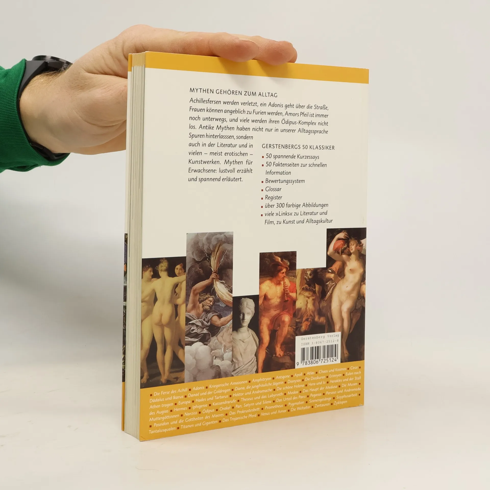 Mythen gehören zum Alltag. Ewig junge Geschichten von Krieg und Liebe, Eifersucht und Neid, Rache und Betrug; von den Anfängen der Flugkunst über die Angst der Männer vor starken Frauen zur klassischen Familienkatastrophe. Achillesfersen werden verletzt, ein Adonis geht über die Straße, und Frauen können angeblich zu Furien werden. Zankäpfel machen das Leben schwer, und sie aus dem Wege räumen zu wollen kann eine Sisyphusarbeit sein, die zu Tantalusqualen führt. Amors Pfeil ist immer noch unterwegs, und viele werden ihren Ödipus-Komplex nicht los. 50 Klassiker Mythen versammelt alle wichtigen Mythen der Antike. In den Kurzessays werden sie mit aktuellem Bezug zu unserer Zeit neu erzählt. Verweise zum Fortleben des Mythos sowie Anekdoten, Missverständnisse oder satirische Umdeutungen sind durch Kästen im Layout hervorgehoben. Auf der Faktenseite sind die Quellen der Mythen angegeben sowie Texte und Kunstwerke, in denen sie weiterleben, und Lese-, Hör- und Filmtipps. Gerstenbergs kritisches Bewertungssystem erfasst die Spannungspunkte des einzelnen Mythos auf einen Blick. Abgerundet wird das Buch durch ein Personenregister mythologischer Gestalten und ein fundiertes Glossar. Gerold Dommermuth-Gudrich, geboren 1935, ist Übersetzer und Lektor. Er lebt in der Nähe von Frankfurt.