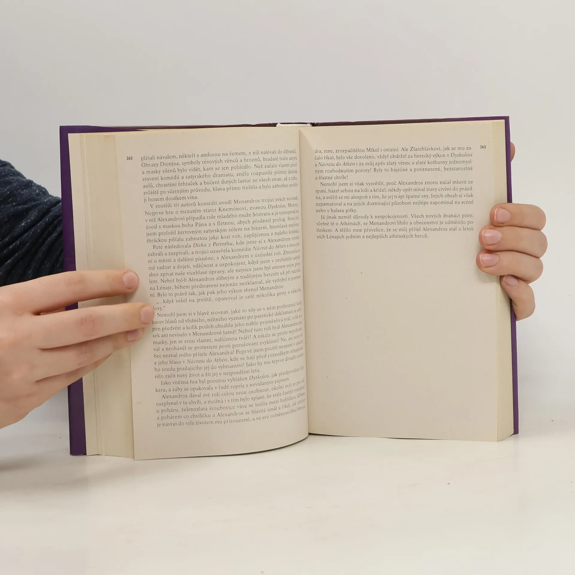 Historická románová freska ze starověkého Řecka vypráví příběh chrámového zpěváka na pozadí dramatického období po smrti Alexandra Velikého. Hrdina opouští rodiče a prchá ze zapadlé vesnice do Alexandrie, pak na jih Egypta, do Athén a do Palestiny, neustále hnán láskou k záhadné egyptské dívce. Jako člen divadelní družiny v Athénách se setkává i s významnými osobnostmi antického světa, účastní se dobývání Rhodu. Jeho osudy pomáhají vykreslit neklidnou dobu střetávání různých národů, kultur i náboženství.