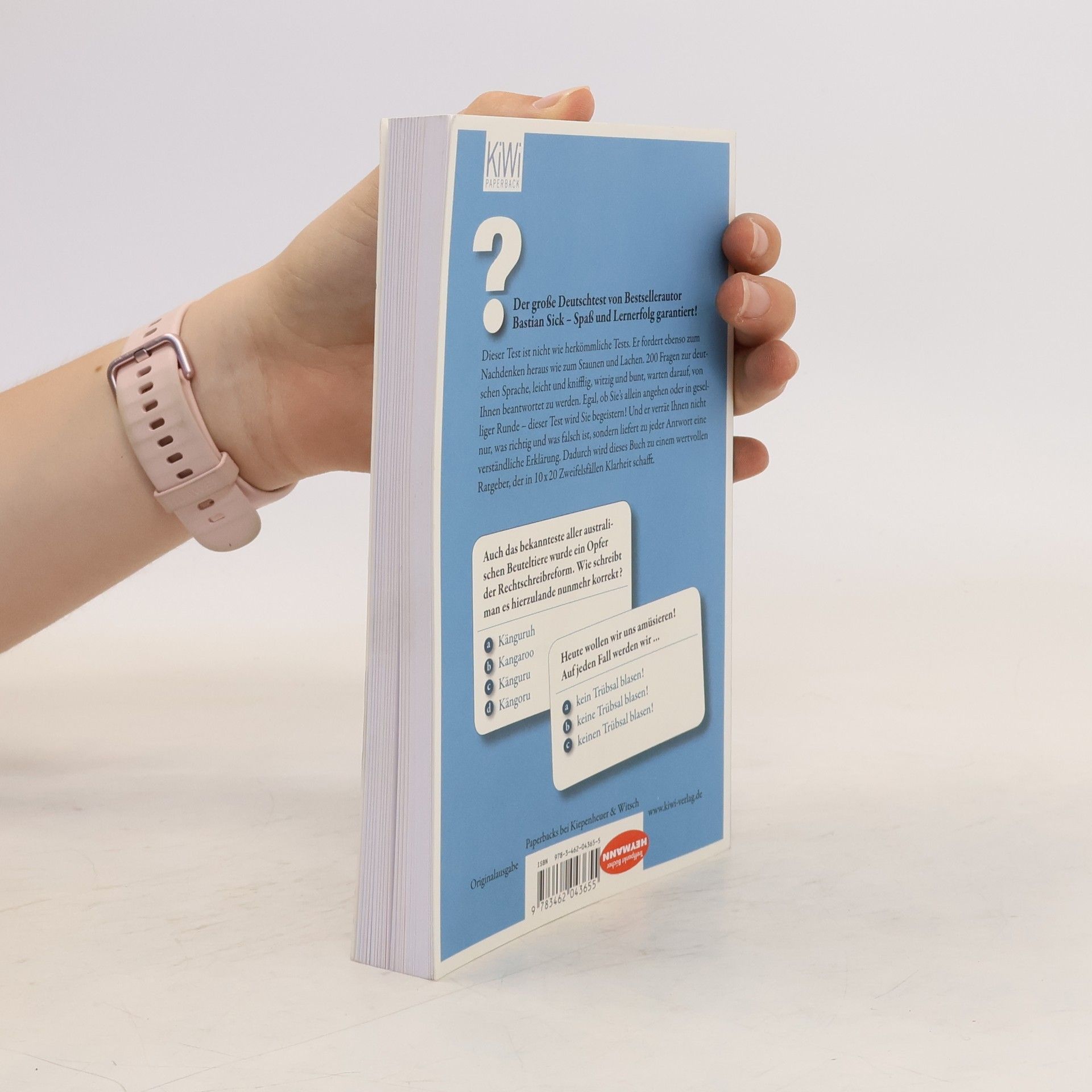 Dieser Autor strapaziert a) Ihr Zwergfell b) Ihr Zwerchfell c) Ihr Zwärchfell oder gar d) Ihr Zwärgfell Wie lautet die Mehrzahl von Oktopus? Was ist ein Pranzer? Wofür stand die Abkürzung SMS vor hundert Jahren? Und ist Brad Pitt nun der gutaussehendste, bestaussehendste oder am besten aussehende Filmstar unserer Zeit? Der große Deutschtest von Bestsellerautor Bastian Sick versammelt spannende Fragen aus dem Fundus der Irrungen und Wirrungen unseres Sprachalltags – zur Rechtschreibung und Zeichensetzung, zur Grammatik und zum Stil. Leichte und kniffelige Fragen sind dabei bunt gemischt. Nicht immer geht es um richtig oder falsch, manchmal wird unter mehreren Möglichkeiten die »optimalste« gesucht. Und manchmal ist mehr als nur eine Antwort richtig. Finden Sie heraus, ob Sie im PISA-Durchschnitt liegen, ob Sie das Zeug zum Deutschlehrer haben oder ob Sie womöglich ein Alleswisser sind – Spaß und Lernerfolg garantiert!
