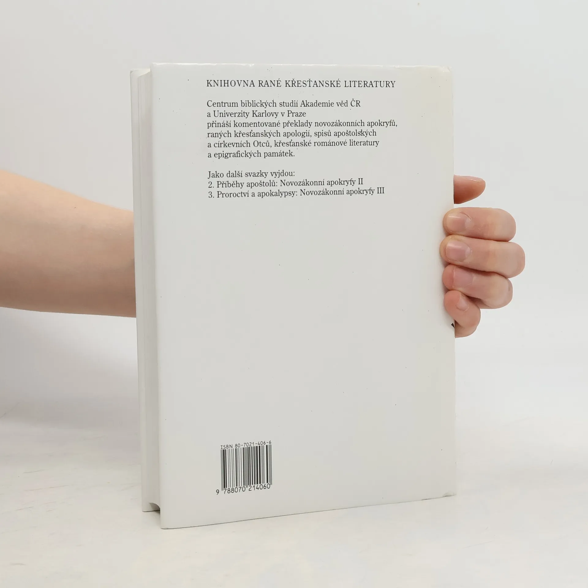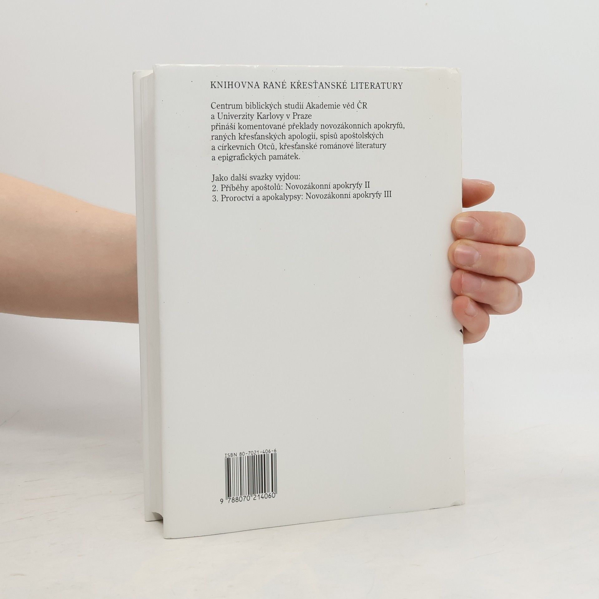 Souborné vydání apokryfních evangelií sepsaných do roku 150 po Kristu. Překlady z řeckých, koptických a latinských originálů. První svazek edice ,,Raně křesťanské literatury" obsahuje všechna apokryfní evangelia, která vznikla do roku 150 po Kr. S odbornými komentáři tu v novém překladu vycházejí mj." Tomášovo evangelium, fragment Evangelia Petrova, Evangelium Mariino, Rozhovor se Spasitelem, ...