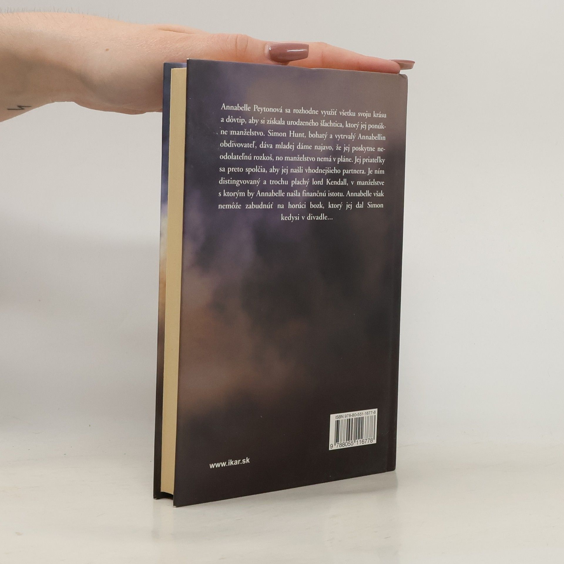 Annabelle Peytonová sa rozhodne využiť všetku svoju krásu a dôvtip, aby si získala urodzeného šľachtica, ktorý jej ponúkne manželstvo. Simon Hunt, bohatý a vytrvalý Anabellin obdivovateľ, dáva mladej dáme najavo, že jej poskytne neodolateľnú rozkoš, no manželstvo nemá v pláne. Jej priateľky sa preto spolčia, aby jej našli vhodnejšieho partnera. Je ním distingvovaný a trochu plachý lord Kendall, v manželstve s ktorým by Anabelle našla finančnú istotu. Annabelle však nemôže zabudnúť na horúci bozk, ktorý jej dal Simon kedysi v divadle...