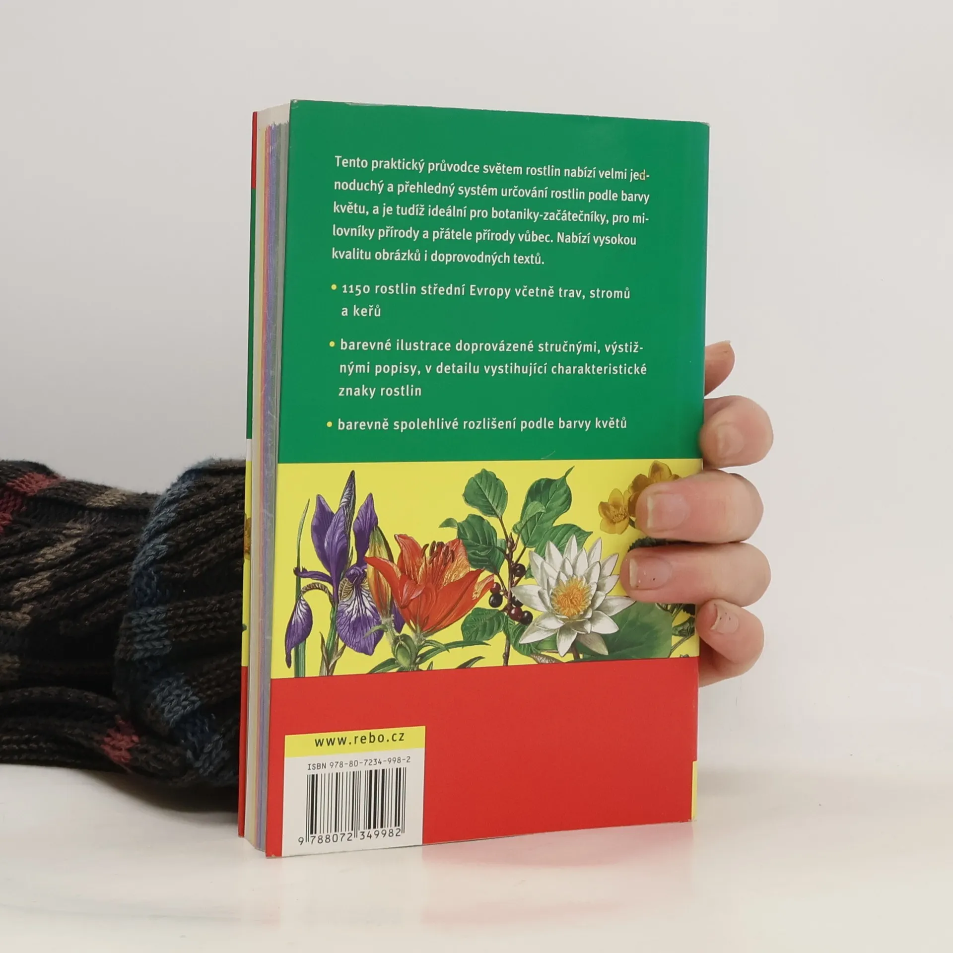 Tento praktický průvodce Světem rostlin nabízí velmi jednoduchý a přehledný systém určování rostlin podle barvy květů a je tudíž ideální pro botaniky-začátečníky, pro milovníky přírody a. přátele přírody vůbec Nabízí vysokou kvalitu obrázků i doprovodných textů. * 1150 rostlin střední Evropy včetně trav, stromů a keřů * barevné ilustrace doprovázené stručnými, výstižnými popisy, v detailu vystihující charakteristické znaky rostlin * barevný kód pro jednoduché určování