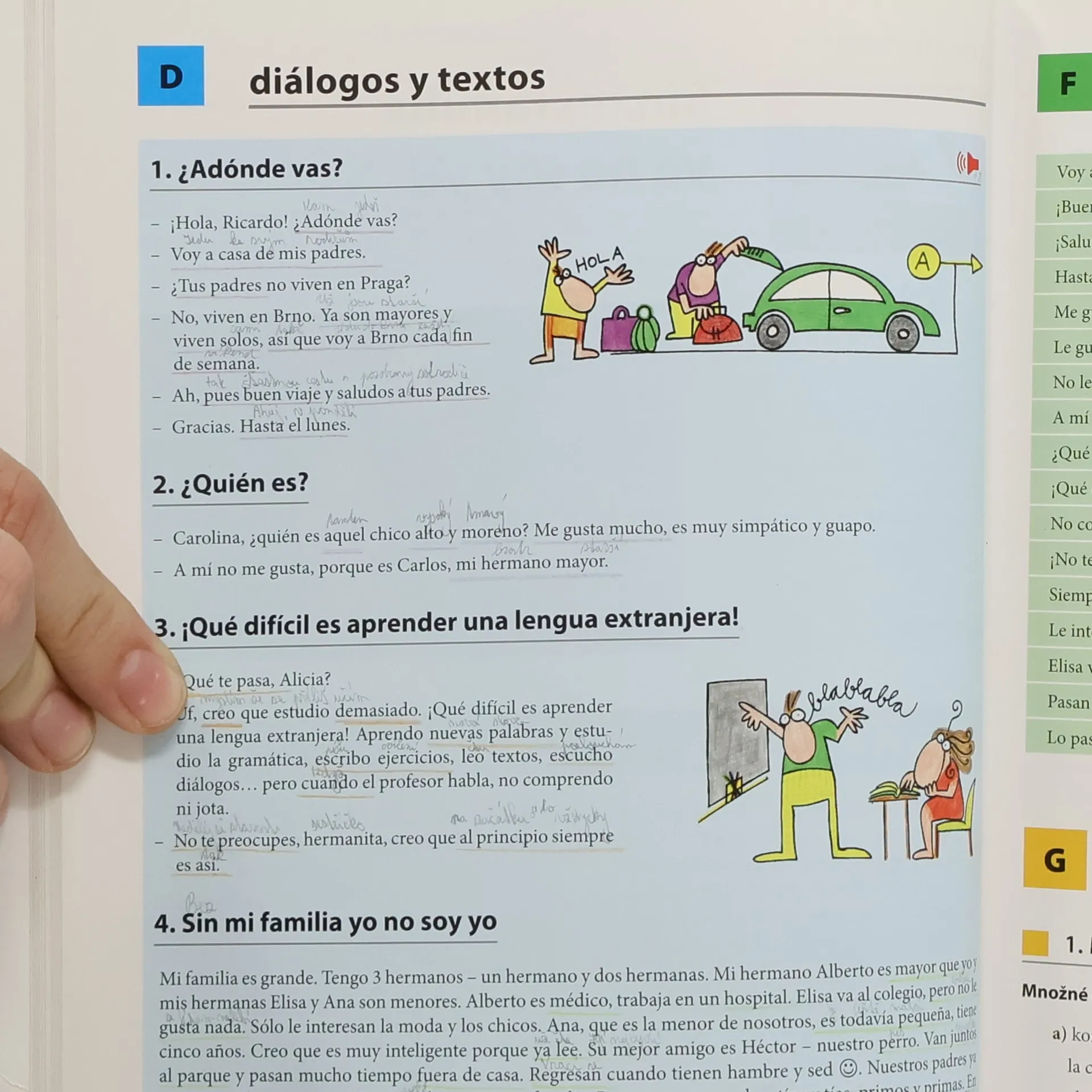 Publikace obsahuje 20 lekcí, které tvoří moduly po 4 lekcích, každá pátá lekce je opakovací. Lekce začínají moderními a autentickými krátkými texty, které jsou zaměřeny především na hovorový jazyk. Pak následuje oddíl Frazeologie, věnovaný obtížnějším frázím z výchozího textu, dále naleznete výklad gramatiky. Jazykový koutek upozorňuje na konstrukce a vazby, které českým studentům dělají potíže. V každé lekci se také seznámíte s několika ustálenými rčeními nebo příslovími.