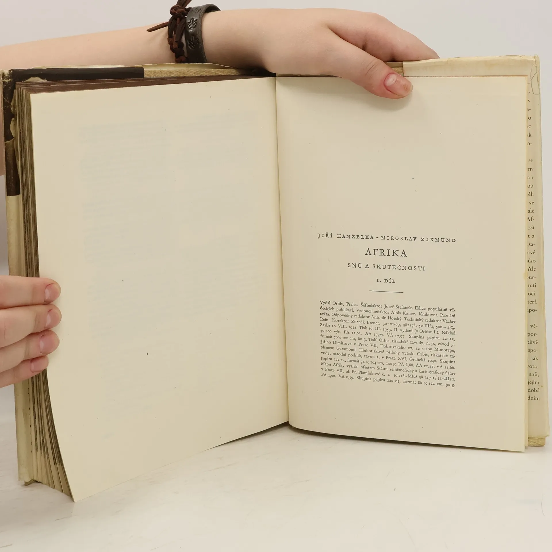 Jiří Hanzelka a Miroslav Zikmund nás seznamují s Afrikou dneška, zbavenou ilusí a vysněných představ. Ukazují čtenáři i její historii, její přírodní krásy a zajímavosti. 1. svazek cestopisného díla o Africe líčí dojmy a poznatky autorů při jejich cestě automobilem z Prahy přes Bavory,Švýcarsko a jižní Francii a pak z Casablancy po severoafrickém pobřeží, Marokem, Alžírem, Tunisem, Tripolskem, Cyrenaikou do Alexandrie a Káhiry, Port Saidu, podél Nilu do Sudanu a Eritreje. Všímají si nejen všedního života domorodého obyvatelstva a exotických zvláštností, ale též politických poměrů koloniální praxe imperialistických mocností, vyprávějí o vykořisťování afrického obyvatelstva i o osvobozenském hnutí koloniálních národů. 240 fotografii + ilustrace