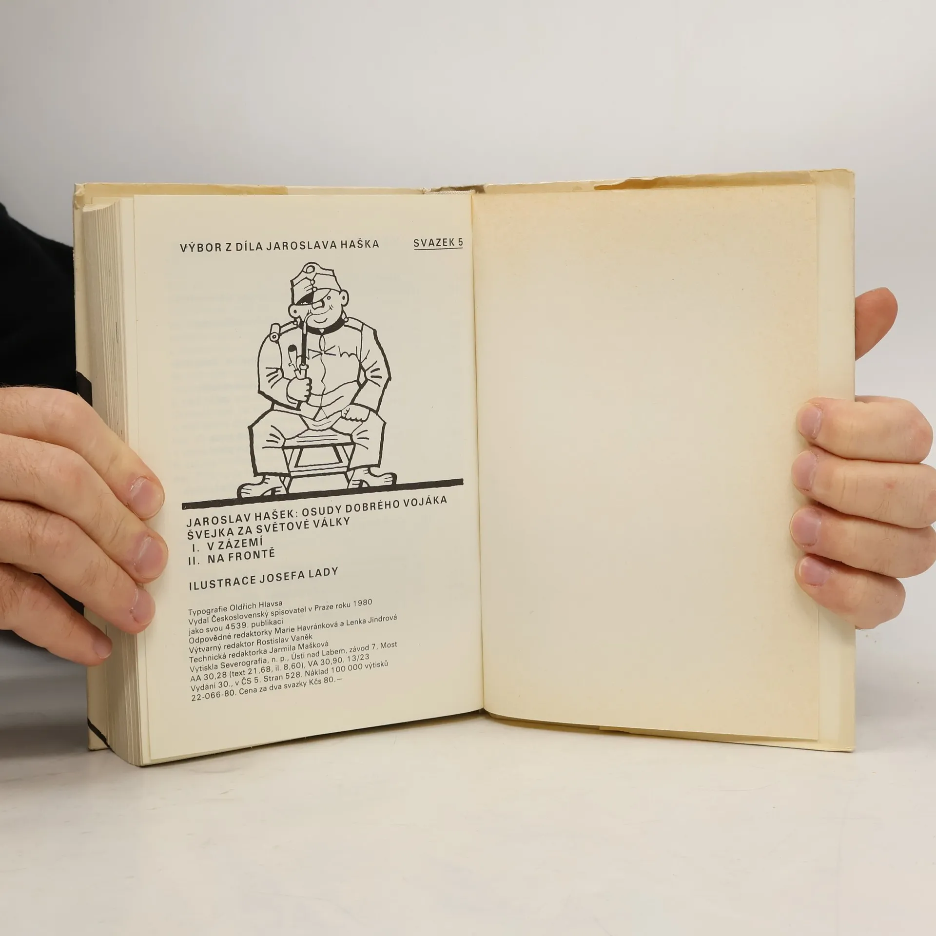 Vydáno k 100. výročí narození Jaroslava Haška. Díl první: V zázemí (1921) – Díl druhý: Na frontě (1922). Dobrý voják Švejk je jedna z nejznámějších a nejoblíbenějších postav nejen české, ale i světové literatury. Svědčí o tom spolu s četnými vydáními doma a v zahraničí také skutečnost, že se z díla stala v pravém slova smyslu klasika, která se neustále čte a cituje. Možná bychom mohli mluvit i o součásti naší národní povahy, ať už v dobrém nebo pejorativním smyslu. Švejk, hostinský Palivec, polní kurát Katz, nadporučík Lukáš, sapér Vodička, Baloun a další postavičky nadále žijí svým životem.