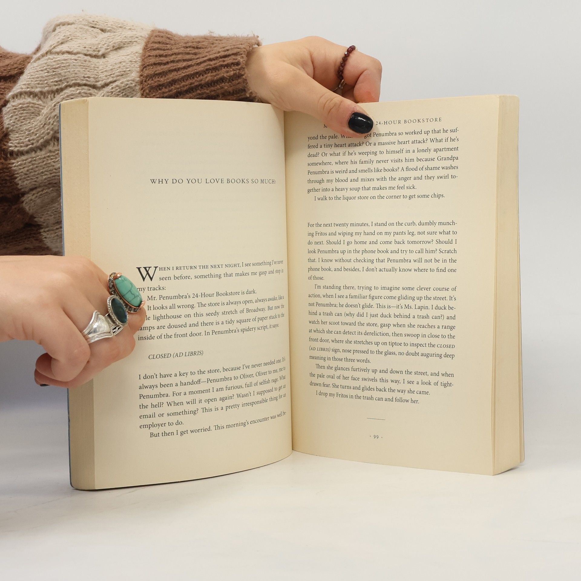 Recession has shuffled Clay Jannon out of his life as a San Francisco Web-design drone and has landed him a new job working the night shift at Mr. Penumbra's 24-Hour Bookstore. There are only a few customers, but they come in repeatedly and never seem to actually buy anything; instead they simply borrow impossibly obscure volumes from strange corners of the store, all according to some elaborate, long-standing arrangement with the gnomic Mr. Penumbra. The store must be a front for something larger, Clay concludes, and soon he's embarked on a complex analysis of the customers' behaviour.