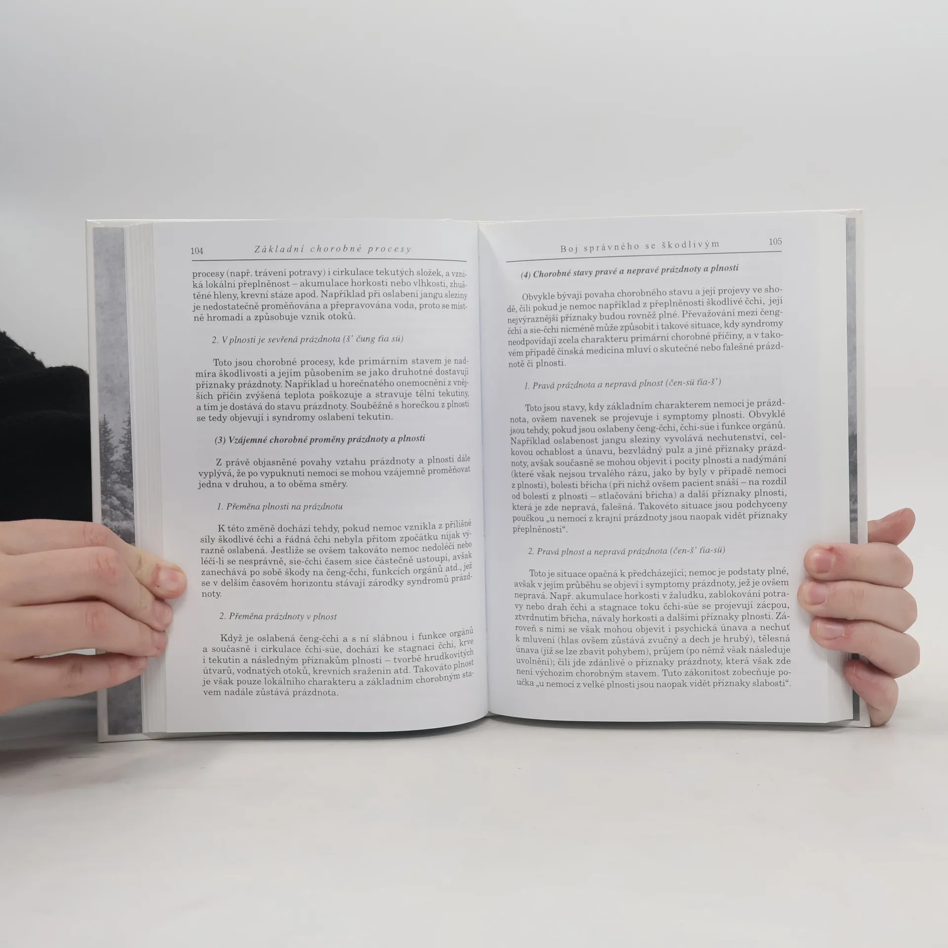 Další rozsáhlý tematický okruh základní teorie čínské medicíny představuje učení o příčinách nemocí, etiologie. Celostní přístup vede k odhalování spojitostí na první pohled nesouvisejících. KAPITOLA VI – PŘÍČINY ONEMOCNĚNÍ Vnější příčiny onemocnění Šest rozvracečů Nákaza Paraziti Vnější poranění Vnitřní příčiny poranění Sedm nemocí Potrava Aktivita a odpočinek Ostatní příčiny onemocnění Hleny Krevní stáze Vrozené příčiny KAPITOLA VII – CHOROBNÉ PROCESY Vznik nemoci Střídavé převažování se řádné a škodlivé čchi Faktory ovlivňující řádnou čchi Všeobecné zákonitosti vzniku a vývoje nemoci Základní chorobné procesy Přesila a oslabenost škodlivého a správného Disharmonie jin-jangu Disharmonie stoupání a klesání Disharmonie čchi a krve Disharmonie metabolismu tekutin Chorobné procesy u horečnatých onemocnění z vnějších příčin Chorobné procesy u šesti drah Chorobné procesy ve vrstvách ochrany, čchi, výživy a krve Chorobné procesy u tří zářičů Chorobné procesy z pěti vnitřních škodlivostí Uvnitř se hýbe větrná čchi Zevnitř se rodí chlad Uvnitř se rodí vlhké kaly Zranění tekutin generuje sucho Uvnitř se rodí ohnivá horkost Chorobné procesy v síti drah čchi Chorobné procesy u orgánů cang-fu Chorobné procesy u orgánů cang Chorobné procesy u orgánů fu Chorobné procesy u zvláštních orgánů fu Interakce chorobných procesů u orgánů cang-fu DODATKY Rejstřík čínských slov