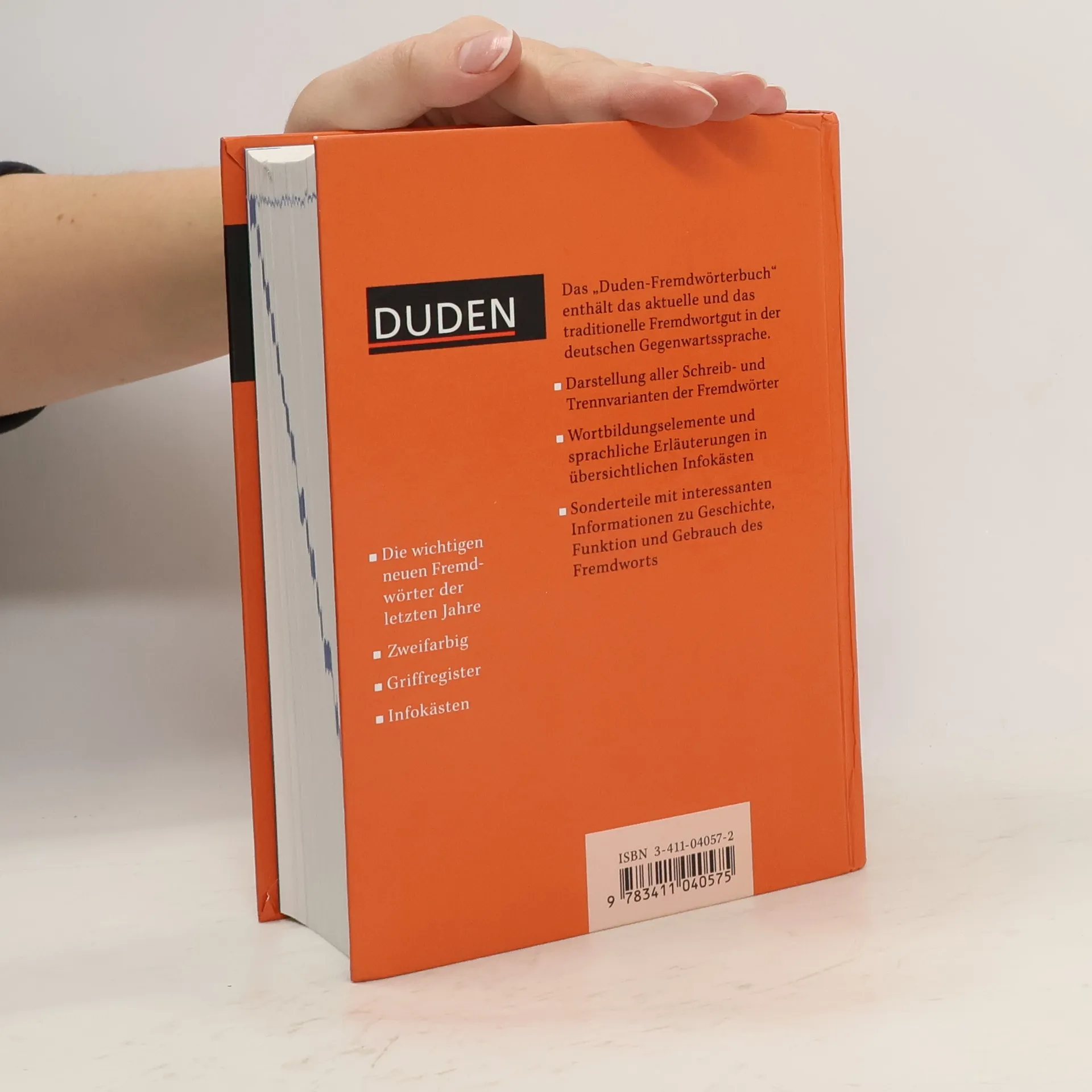 Außergewöhnliche Reichhaltigkeit und Aktualität zeichnen das Duden- Fremdwörterbuch aus. Mit rund 50000 Stichwörtern ist es das grundlegende Nachschlagewerk über Fremdwörter und fremdsprachliche Fachausdrücke. Die sprachwissenschaftliche Erfahrung der Duden-Redaktion und das Wissen zahlreicher Fachgelehrter bürgen für zuverlässige Angaben zu Schreibung, Silbentrennung, Aussprache, Herkunft, Grammatik und Bedeutung. Mit dem Fremdwörterbuch von Duden gibt es keine Schwierigkeiten beim Verstehen und Gebrauch von Fremdwörtern