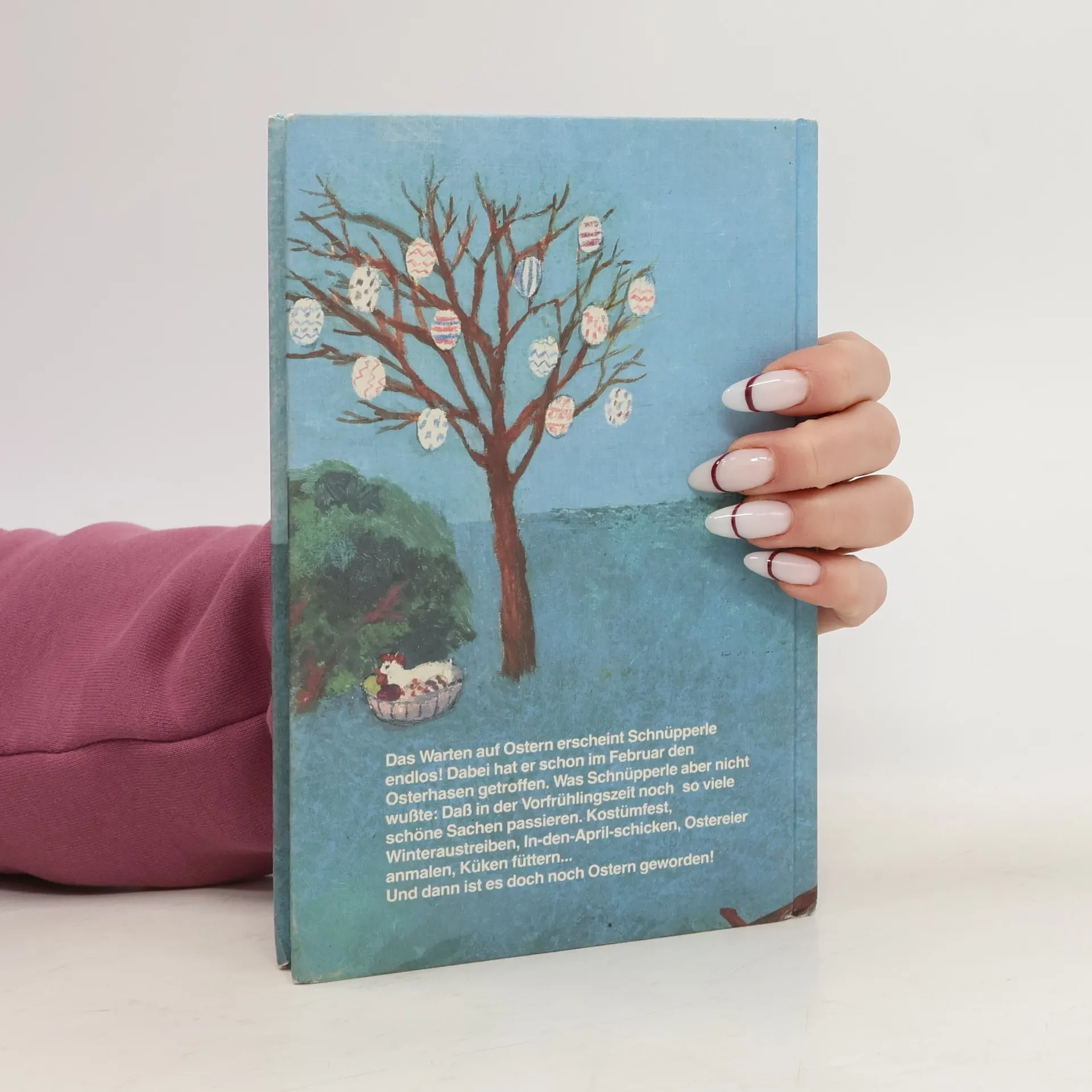 Schnüpperle hat's gut. Der fünfjährige Bengel, der sich die Kinderherzen immer wieder erobert, wächst in einer glücklichen Familie auf, umgeben von Vater und Mutter (die meinen „Quatsch muss auch mal sein“), der älteren Schwester Annerose (die schon zur Schule geht) und der resoluten Oma mit eine Herz für Kinder und den Hund Purzel. Das Warten auf Ostern erscheint Schnüpperle endlos. Dabei hat er doch schon im Februar den Osterhasen getroffen! Was Schnüpperle aber nicht wußte, daß in der Vorfrühlingszeit noch so viele andere schöne Sachen passieren: Kostümfest, Winteraustreiben, In-den-April-Schicken, Ostereier anmalen, Küken füttern... Und dann ist es doch noch Ostern geworden!