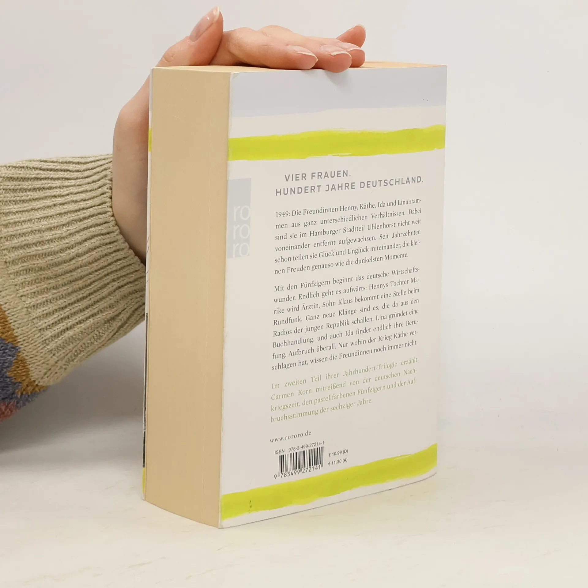 Vier Frauen. Hundert Jahre Deutschland.1949: Die Freundinnen Henny, Käthe, Ida und Lina stammen aus ganz unterschiedlichen Verhältnissen. Dabei sind sie im Hamburger Stadtteil Uhlenhorst nicht weit voneinander entfernt aufgewachsen. Seit Jahrzehnten schon teilen sie Glück und Unglück miteinander, die kleinen Freuden genauso wie die dunkelsten Momente. Mit den Fünfzigern beginnt das deutsche Wirtschaftswunder. Endlich geht es aufwärts: Hennys Tochter Marike wird Ärztin, Sohn Klaus bekommt eine Stelle beim Rundfunk. Ganz neue Klänge sind es, die da aus den Radios der jungen Republik schallen. Lina gründet eine Buchhandlung, und auch Ida findet endlich ihre Berufung. Aufbruch überall. Nur wohin der Krieg Käthe verschlagen hat, wissen die Freundinnen noch immer nicht.Im zweiten Teil ihrer Jahrhundert-Trilogie erzählt Carmen Korn mitreißend von der deutschen Nachkriegszeit, den pastellfarbenen Fünfzigern und der Aufbruchsstimmung der Sechzigerjahre.