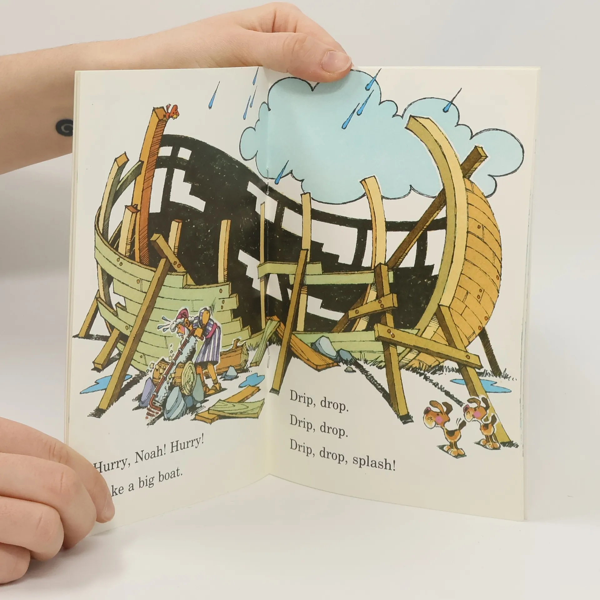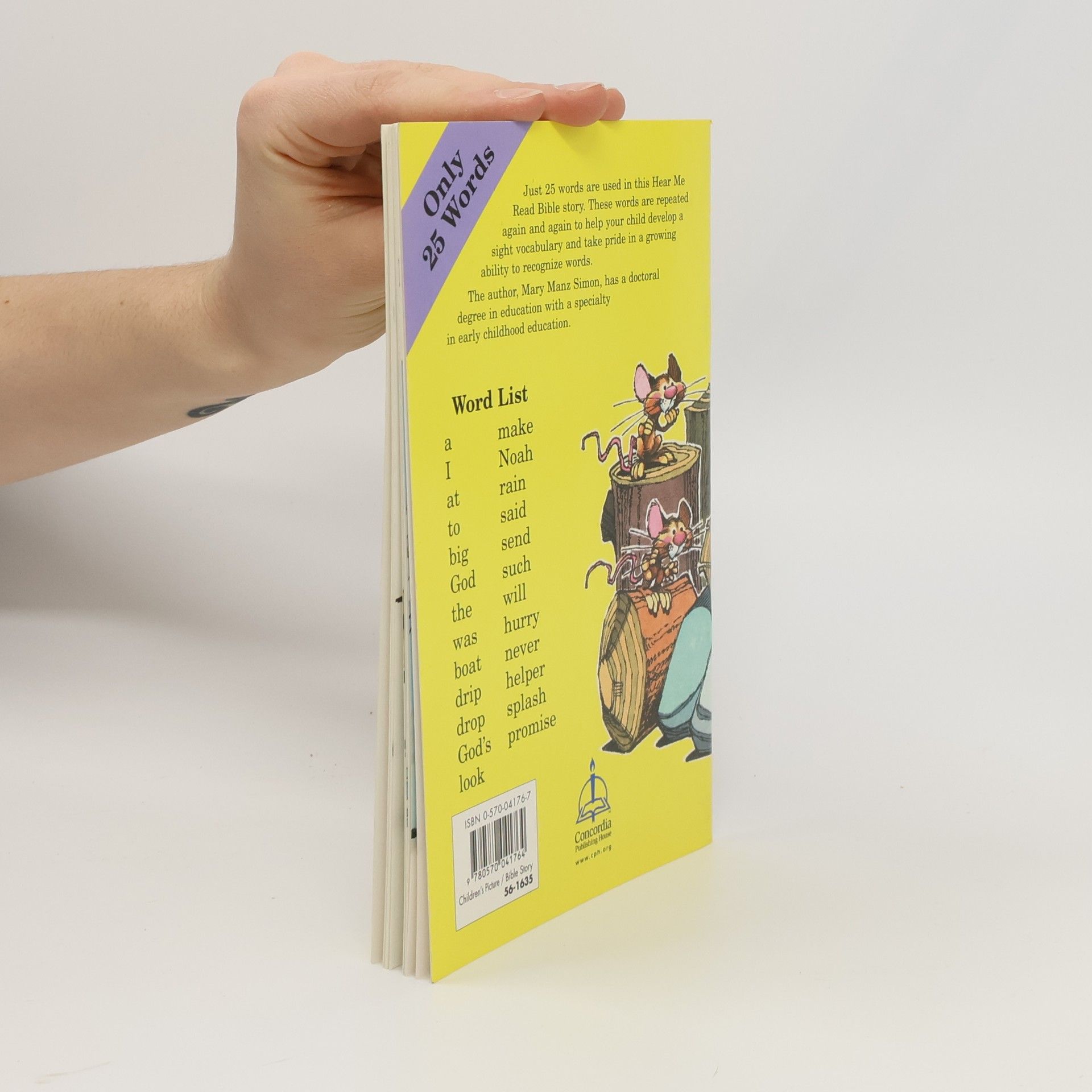A simple retelling of the story of Noah's Ark using only 25 words.