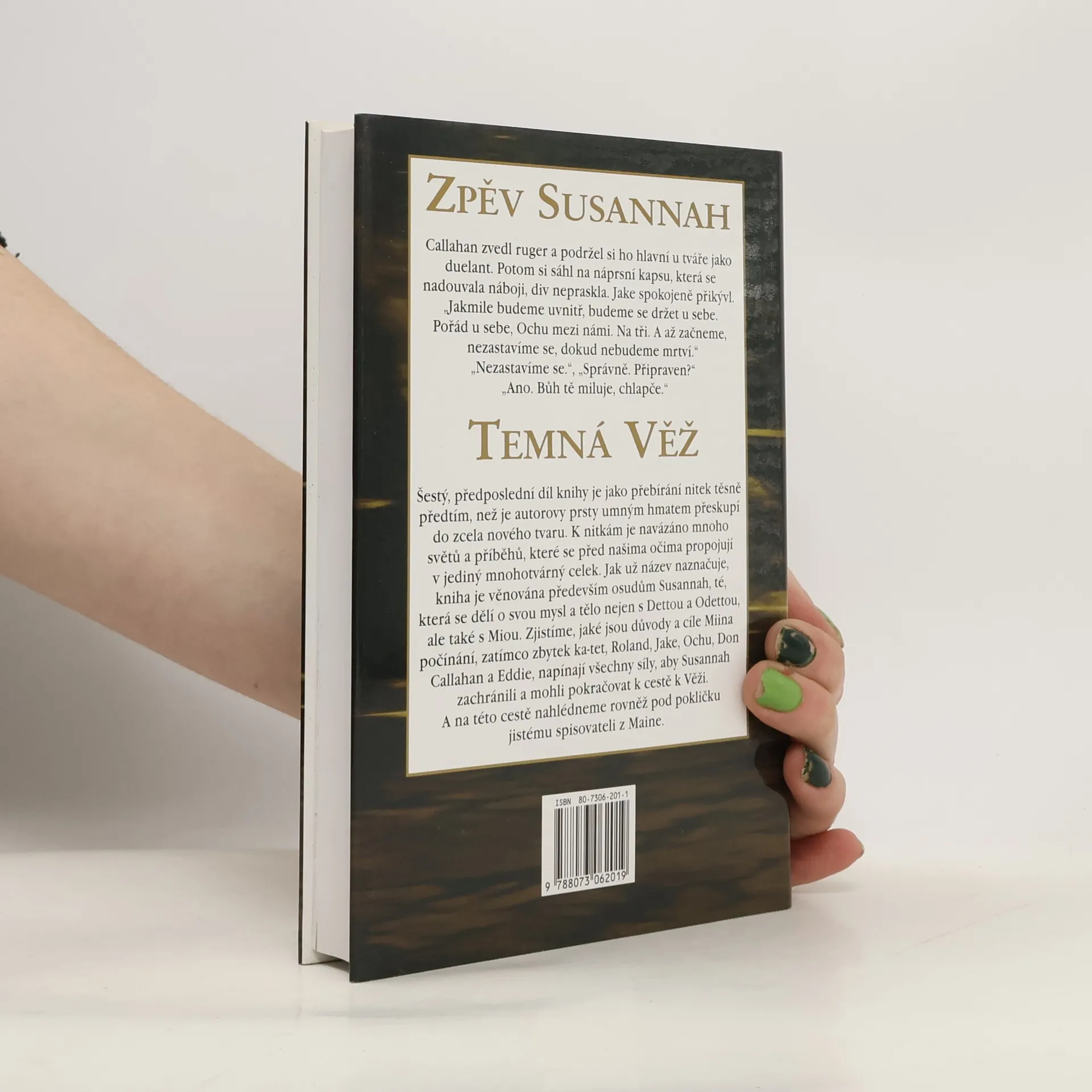 Šestý, předposlední díl knihy je jako přebírání nitek těsně předtím, než je autorovy prsty umným hmatem přeskupí do zcela nového tvaru. K nitkám je navázáno mnoho světů a příběhů, které se před našima očima propojují v jediný mnohotvárný celek. Jak už název naznačuje, kniha je věnována především osudům Susannah, té, která se dělí o svou mysl a tělo nejen s Dettou a Odettou, ale také s Miou. Zjistíme, jaké jsou důvody a cíle Miina počínání, zatímco zbytek ka-tet, Roland, Jake, Ochu, Don Callahan a Eddie, napínají všechny síly, aby Susannah zachránili a mohli pokračovat k cestě k Věži. A na této cestě nahlédneme rovněž pod pokličku jistému spisovateli z Maine.