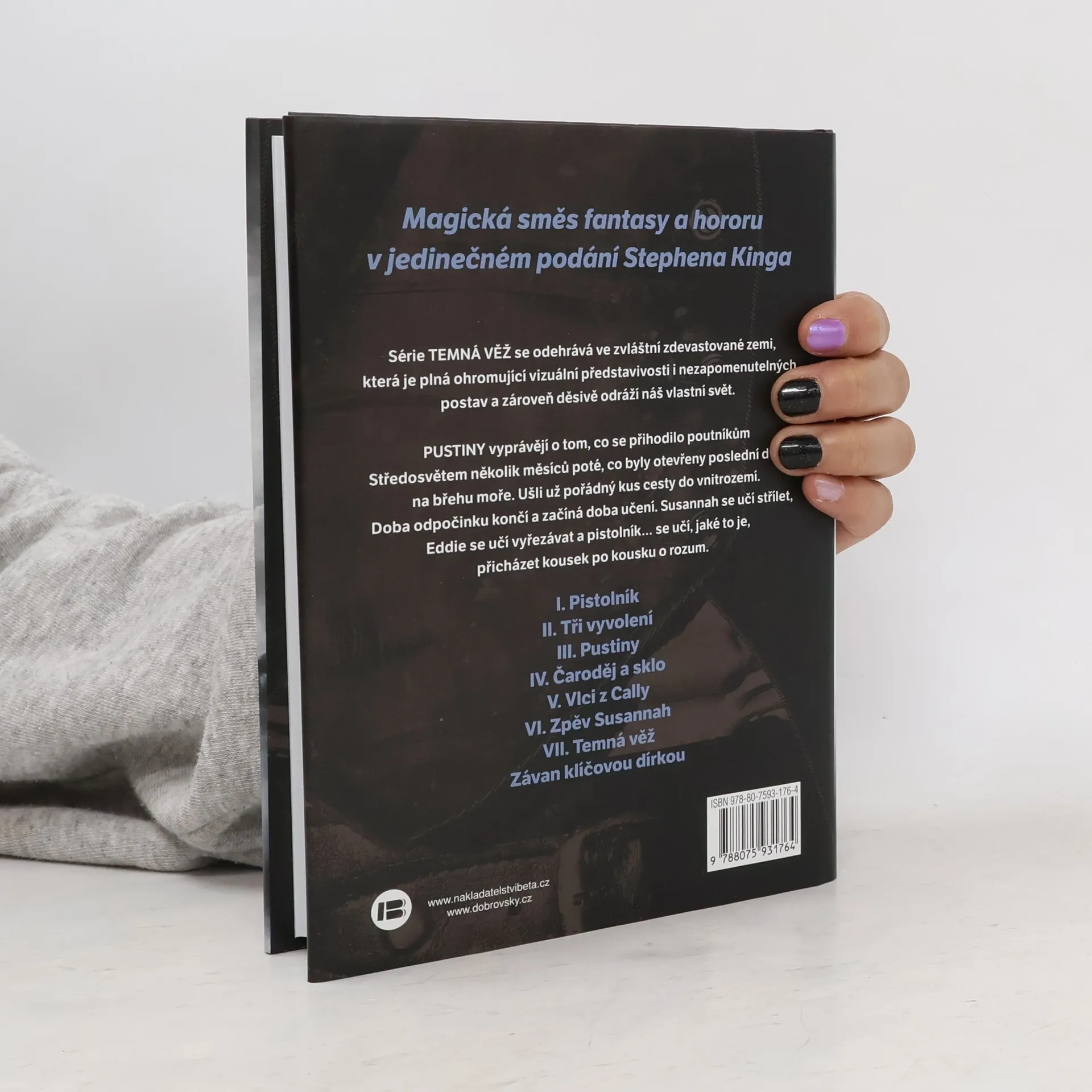 3. vydání Magická směs fantasy a hororu, vizionářská série Stephena Kinga, která se nepodobá ničemu, co jste kdy četli Pustiny vyprávějí o tom, co se přihodilo poutníkům Středosvětem několik měsíců poté, co byly otevřeny poslední dveře na břehu moře. Ušli už pořádný kus cesty do vnitrozemí. Doba odpočinku končí a začíná doba učení. Susannah se učí střílet... Eddie se učí vyřezávat... a pistolník se učí, jaké to je... přicházet kousek po kousku o rozum.