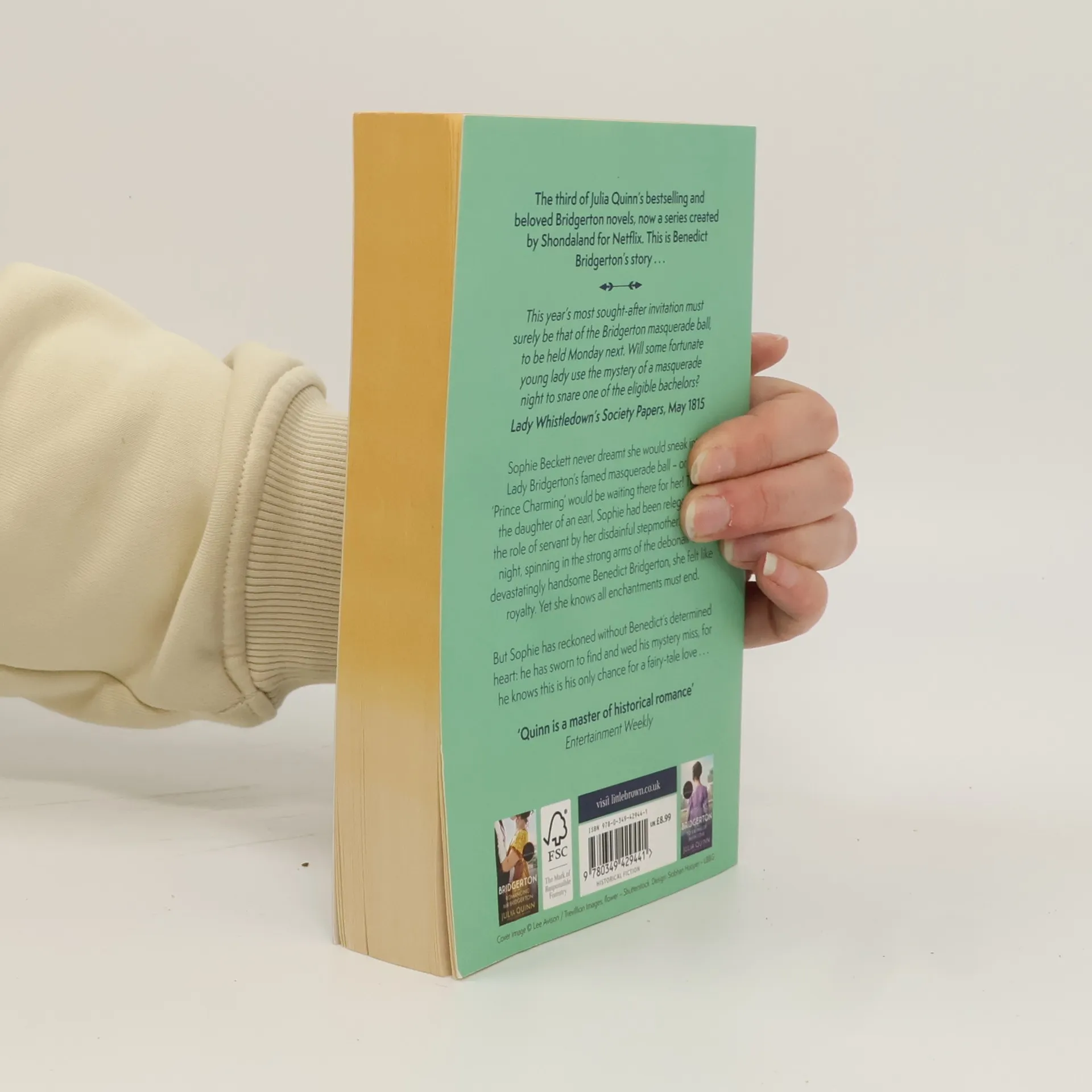 This year's most sought-after invitation must surely be that of the Bridgerton masquerade ball, to be held Monday next. Will some fortunate young lady use the mystery of a masquerade night to snare one of the eligible bachelors? Lady Whistledown's Society Papers, May 1815. Sophie Beckett never dreamt she would sneak into Lady Bridgerton's famed masquerade ball - or that 'Prince Charming' would be waiting there for her! Though the daughter of an earl, Sophie had been relegated to the role of servant by her disdainful stepmother. But that night, spinning in the strong arms of the debonair and devastatingly handsome Benedict Bridgerton, she felt like royalty. Yet she knows all enchantments must end. But Sophie has reckoned without Benedict's determined heart: he has sworn to find and wed his mystery miss, for he knows this is his only chance for a fairy tale love . . .