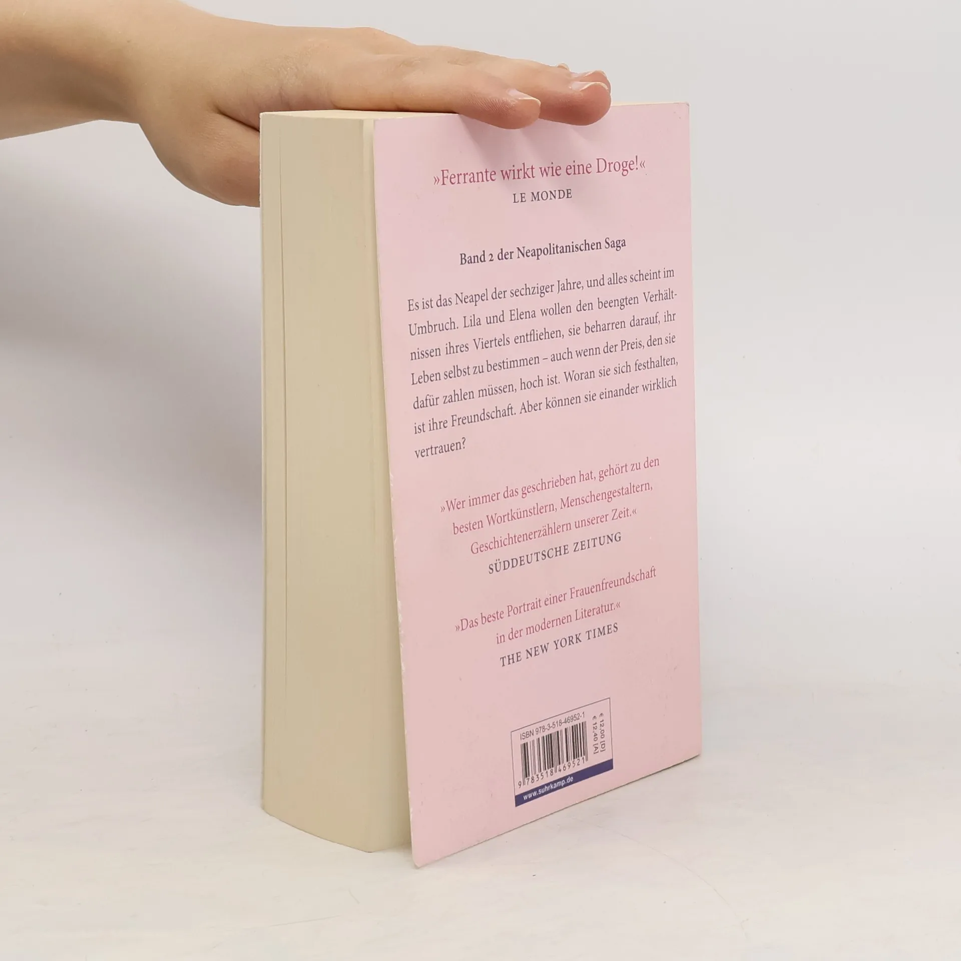 Im Frühling 1966 vertraute Lila mir in höchster Aufregung eine Blechschachtel mit acht Schreibheften an. Sie sagte, sie könne sie nicht länger zu Hause behalten, sie fürchte, ihr Mann könnte sie lesen. Lila und Elena sind jung, und sie sind verzweifelt. Lila hat am Tage ihrer Hochzeit erfahren, dass ihr Mann sie hintergeht – er macht Geschäfte mit verhassten Camorristi. Arm geboren und durch die Ehe schlagartig zu Geld und Ansehen gekommen, brechen für Lila leidvolle Zeiten an. Elena hingegen verliebt sich Hals über Kopf in einen jungen Studenten, doch der scheint nur mit ihren Gefühlen zu spielen. Sie ist eine regelrechte Vorzeigeschülerin geworden, muss aber feststellen, dass das, was sie sich mühsam erarbeitet hat, in ihrer neapolitanischen Welt kaum etwas gilt. Halt finden die beiden Frauen einzig in ihrer Freundschaft, ihre Liebe füreinander wirkt grenzenlos. Wären sie nur beide nicht immer wieder von dem brennenden Verlangen getrieben, die andere auszustechen …