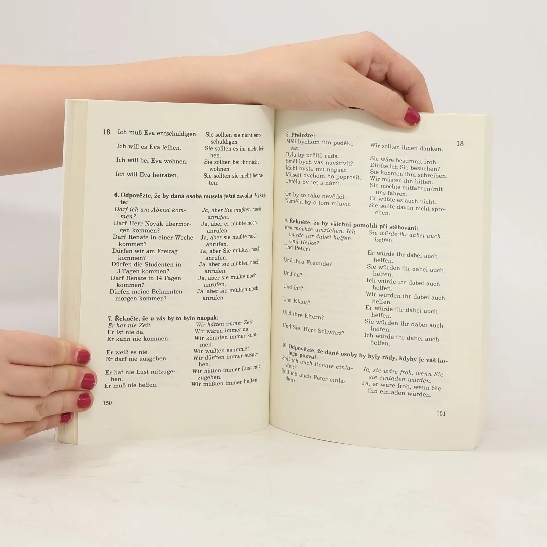Učebnice je zaměřená na komunikativní zvládnutí hovorového jazyka. Vede k získání zručností dorozumět se v základních životních situacích / představování se, na návštěvě, v obchodě, v restauraci, v hotelu, u lékaře, na poště atd. / poskytuje vhodný slovní materiál k nejčastějším tématům rozhovorů / rodina, bývání, volný čas, sport, hudba, cestovaní. Lekce: 1. Sind wir aber neugierig!, 2. Unsere Familie, 3. Zu Besuch, 4. Unsere Deutschstunde, 5. Guten Apetit!, Horst und Karin ziehen um, 7. Beim Artz, 8. Sport treiben oder einkaufen ?, 9. Ein Telefongespräch, 10. Eine Auslandsreise.