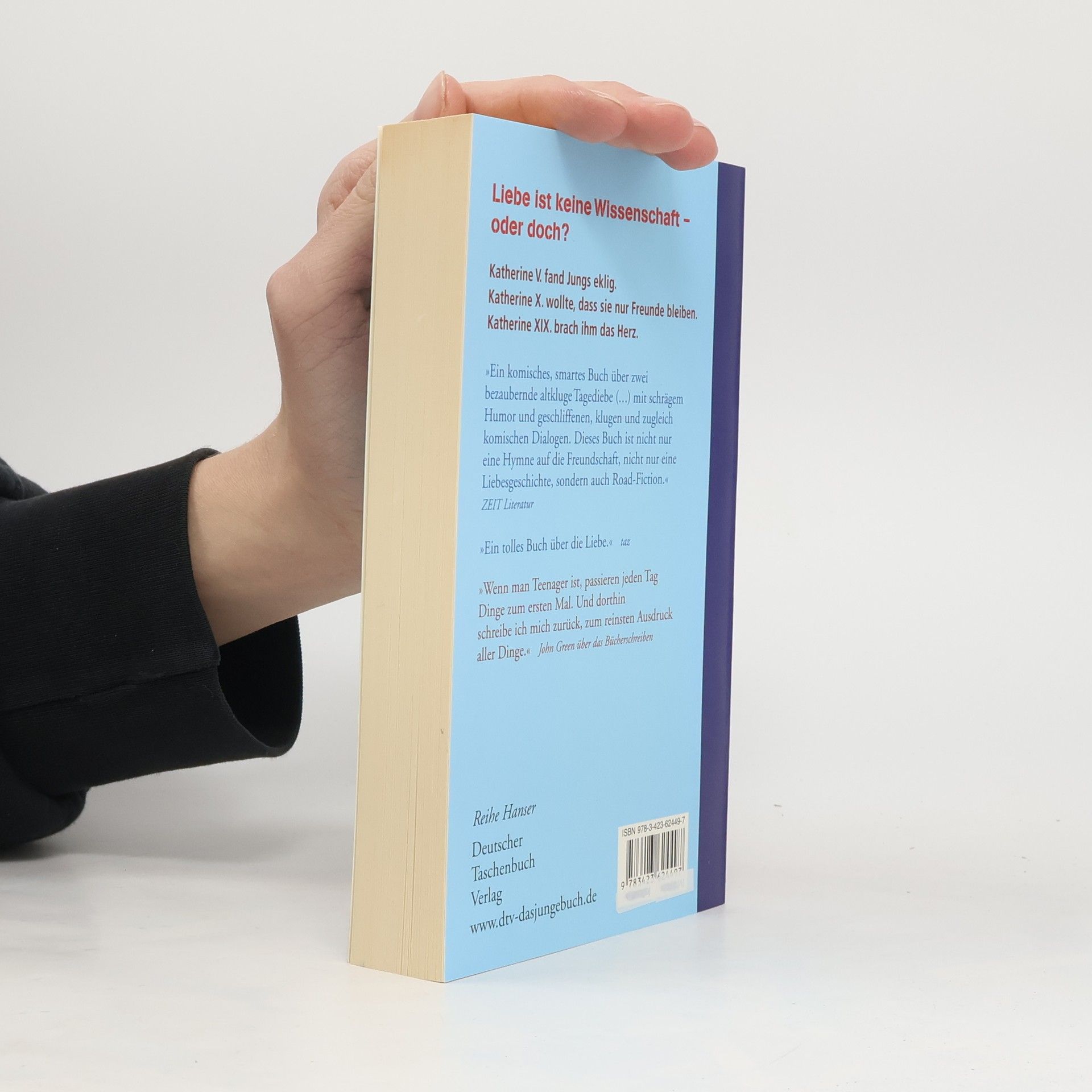 Seine 5. Katherine fand Jungs eklig. Seine 10. Katherine wollte, dass sie nur Freunde blieben. Seine 19. Katherine brach ihm das Herz. Colin ist ein echtes Wunderkind: Er spricht elf Sprachen fließend, bildet liebend gerne Anagramme und ist überhaupt ein wandelndes Lexikon. In der Liebe allerdings läuft es alles andere als gut. Gerade hat ihn zum neunzehnten Mal eine Katherine sitzengelassen. Auf einer Reise quer durch Nordamerika, zu der ihn sein Freund Hassan überredet hat, entwickelt Colin ein Theorem, mit dem er in Zukunft rechtzeitig vorausberechnen will, wann ihn eine Freundin abservieren wird. Doch dann lernt er Lindsey kennen, die sein mühsam ausgearbeitetes Theorem mit einem Wimpernschlag widerlegen wird. Nominiert für den Preis der Jury der Jungen Leser 2009, Literaturhaus Wien