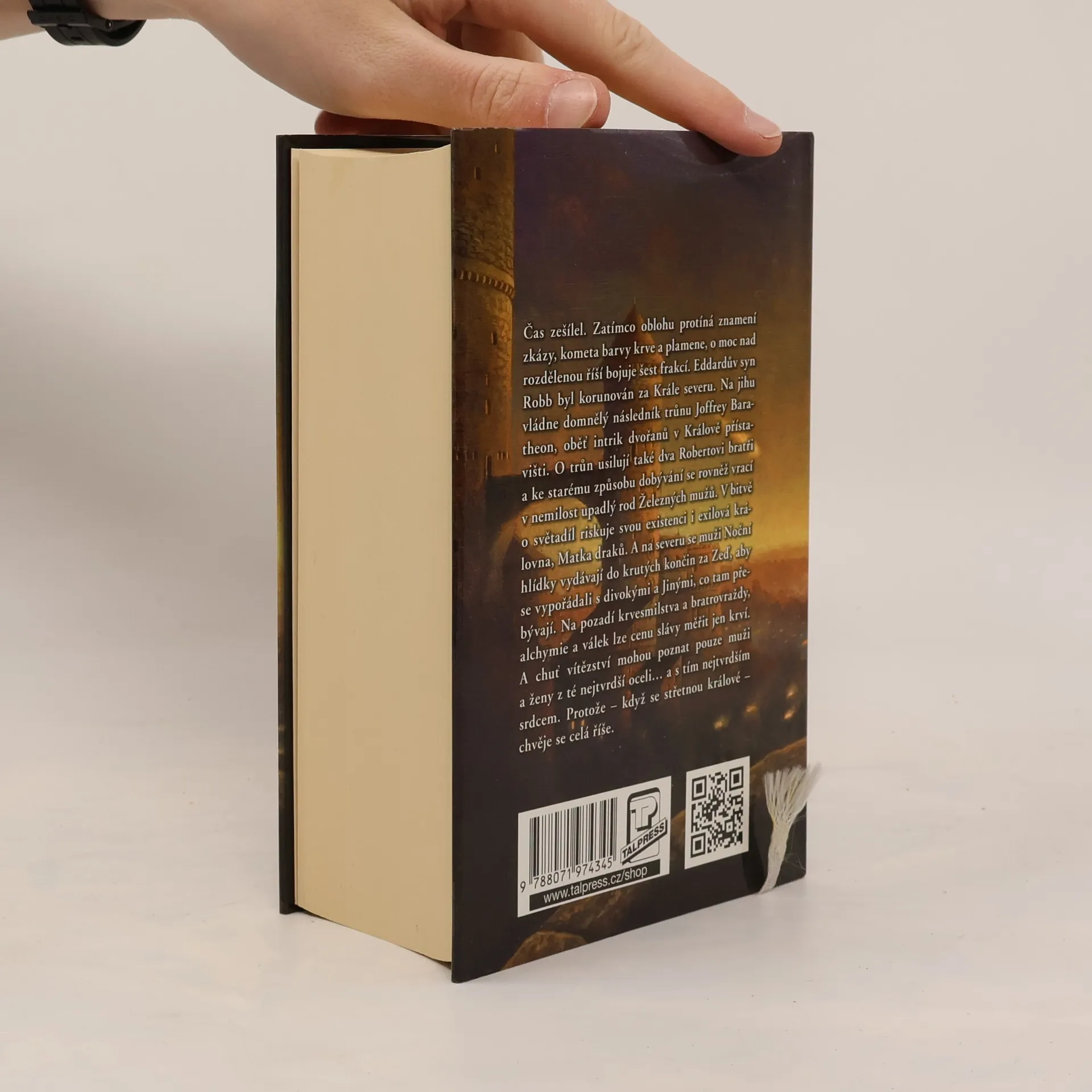 Čas zešílel. Deset let dlouhé léto pokoje a hojnosti se blíží ke konci, a jako zuřivá bestie se neodvratně blíží krutá, mrazivá zima. Dva mocní muži – král Robert Baratheon a lord Eddard Stark –, kteří třímali žezlo moci v časech nuceného míru, jsou mrtví. Zatímco oblohu protíná znamení zkázy – kometa barvy krve a plamene –, o moc nad rozdělenou říší bojuje šest frakcí. Eddarův syn Robb byl korunován za Krále severu. Na jihu vládne domnělý následník trůnu Joffrey Baratheon, oběť intrik dvořanů v Králově přístavišti. O trůn usilují také dva Robertovi bratři a ke starému způsobu dobývání se rovněž vrací v nemilost upadlý rod Železných mužů. V bitvě o světadíl riskuje svou existenci i exilová královna, Matka draků. A na severu se muži Noční hlídky vydávají do krutých končin za Zeď, aby se vypořádali s divokými a Jinými, co tam přebývají. Na pozadí krvesmilstva a bratrovraždy, alchymie a válek lze cenu slávy měřit jen krví. A chuť vítězství mohou poznat pouze muži a ženy z té nejtvrdší oceli… a s tím nejtvrdším srdcem. Protože – když se střetnou králové, chvěje se celá říše.