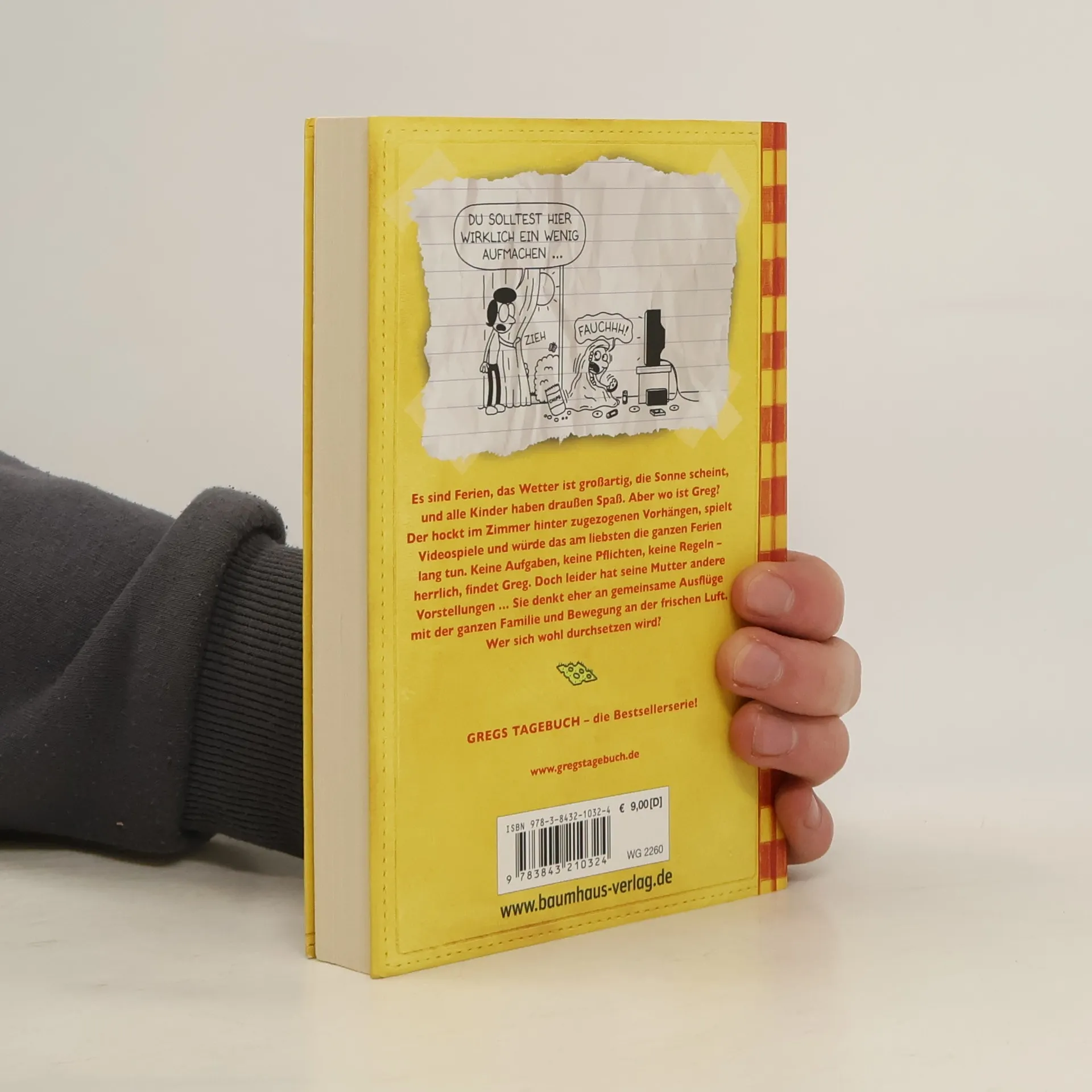 Es sind Ferien, das Wetter ist großartig, die Sonne scheint und alle Kinder haben draußen Spaß. Aber wo ist Greg? Er hockt im Zimmer hinter zugezogenen Vorhängen, spielt Videospiele und würde das am liebsten die ganzen Ferien lang tun. Keine Aufgaben, keine Pflichten, keine Regeln - herrlich findet Greg das. Doch leider hat seine Mutter ganz andere Vorstellungen ... Sie denkt eher an gemeinsame Ausflüge der Familie an der frischen Luft. Wer sich wohl durchsetzen wird?
