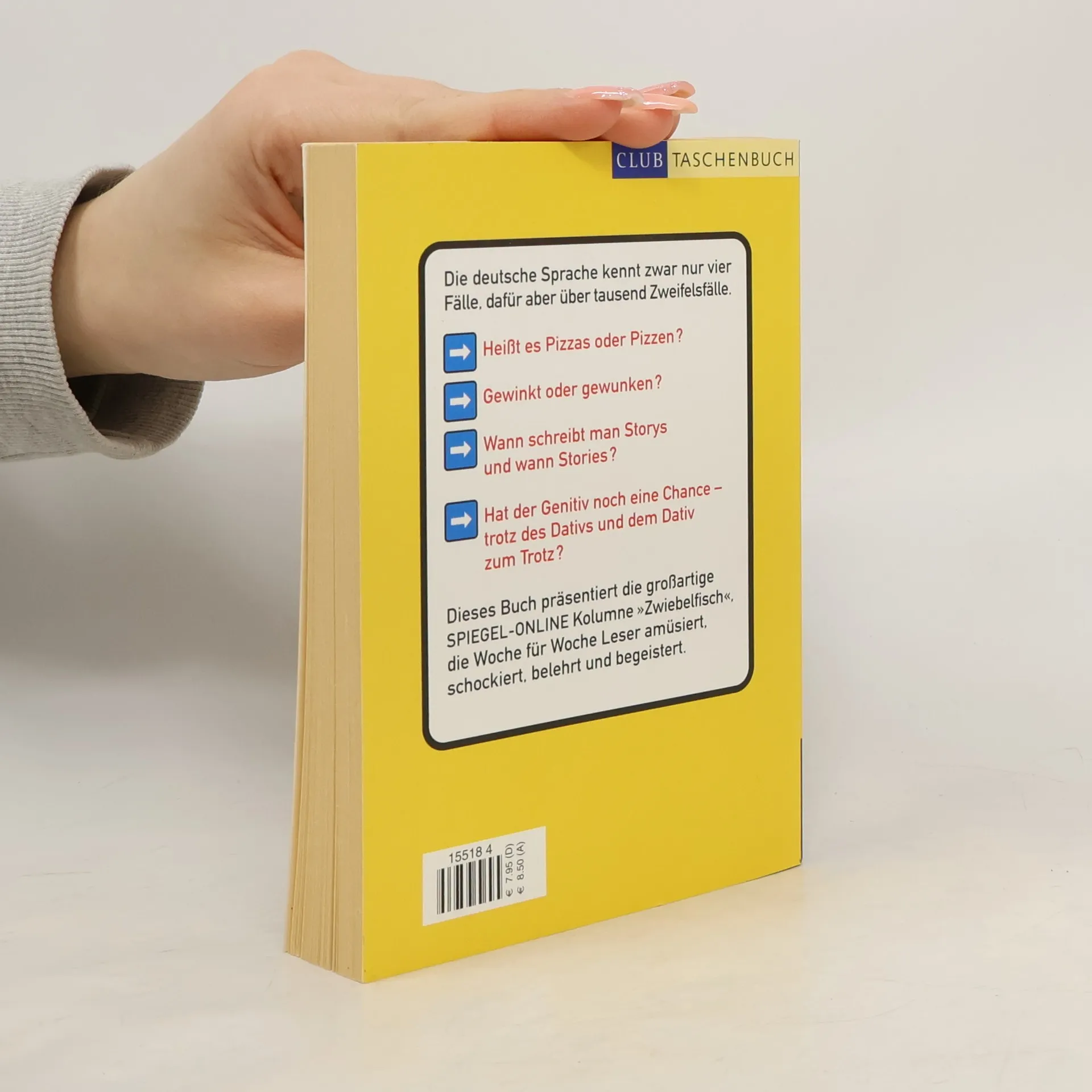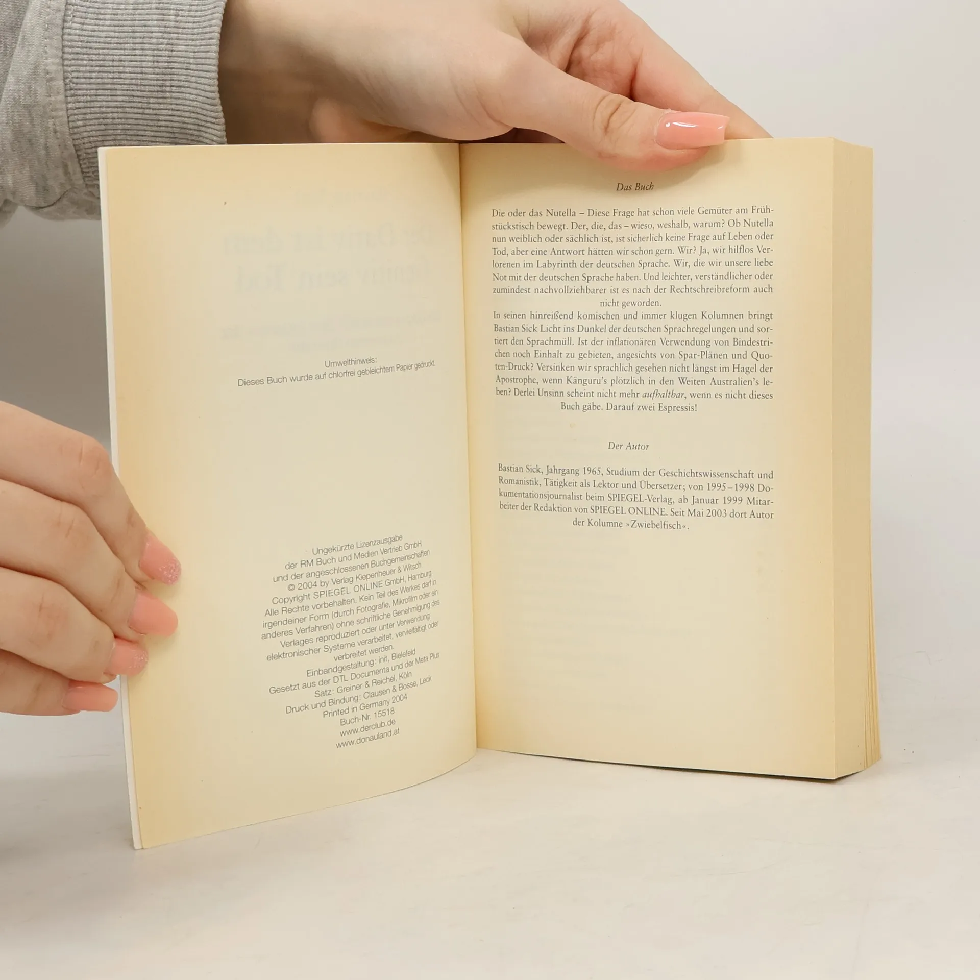 Die erfolgreiche Spiegel-Online-Kolumne Zwiebelfisch - als Buch über eine Million verkaufte Exemplare! Die oder das Nutella – diese Frage hat schon viele Gemüter am Frühstückstisch bewegt. Der, die, das – wieso, weshalb, warum? Ob Nutella nun weiblich oder sächlich ist, ist sicherlich keine Frage auf Leben und Tod, aber eine Antwort hätten wir schon gern. Wir? Ja, wir hilflos Verlorenen im Labyrinth der deutschen Sprache. Wir, die wir unsere liebe Not mit der deutschen Sprache haben. Und leichter, verständlicher oder zumindest nachvollziehbarer ist es nach der Rechtschreibreform auch nicht geworden. In seinen hinreißend komischen und immer klugen Kolumnen bringt Bastian Sick Licht ins Dunkel der deutschen Sprachregelungen und sortiert den Sprachmüll. Ist der inflationären Verwendung von Bindestrichen noch Einhalt zu gebieten, angesichts von Spar-Plänen und Quoten-Druck? Versinken wir sprachlich gesehen nicht längst im Hagel der Apostrophe, wenn Känguru’s plötzlich in den Weiten Australien’s leben? Derlei Unsinn scheint nicht mehr aufhaltbar, wenn es nicht dieses Buch gäbe. Darauf zwei Espressis!