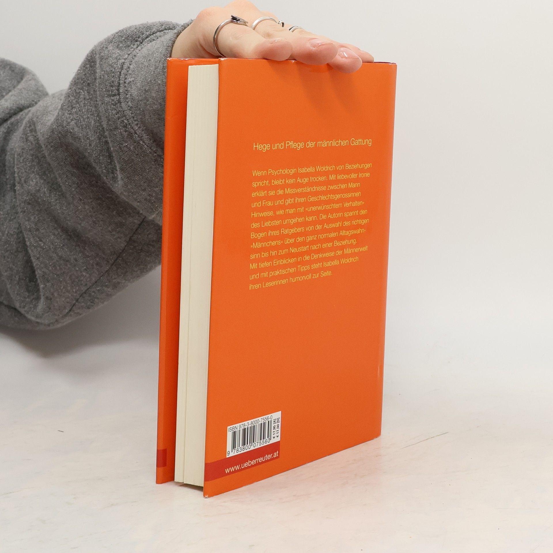 Hege und Pflege der männlichen Gattung -Wenn Psychologin Isabella Woldrich von Beziehungen spricht, bleibt kein Auge trocken. Mit liebevoller Ironie erklärt sie die Missverständnisse zwischen Mann und Frau und gibt ihren Geschlechtsgenossinnen Hinweise, wie man mit "unerwünschtem Verhalten" des Liebsten umgehen kann. Die Autorin spannt den Bogen ihres Ratgebers von der Auswahl des richtigen "Männchens" über den ganz normalen Alltagswahnsinn bis hin zum Neustart nach einer Beziehung. Mit tiefen Einblicken in die Denkweise der Männerwelt und mit praktischen Tipps steht Isabella Woldrich ihren Leserinnen humorvoll zur Seite.