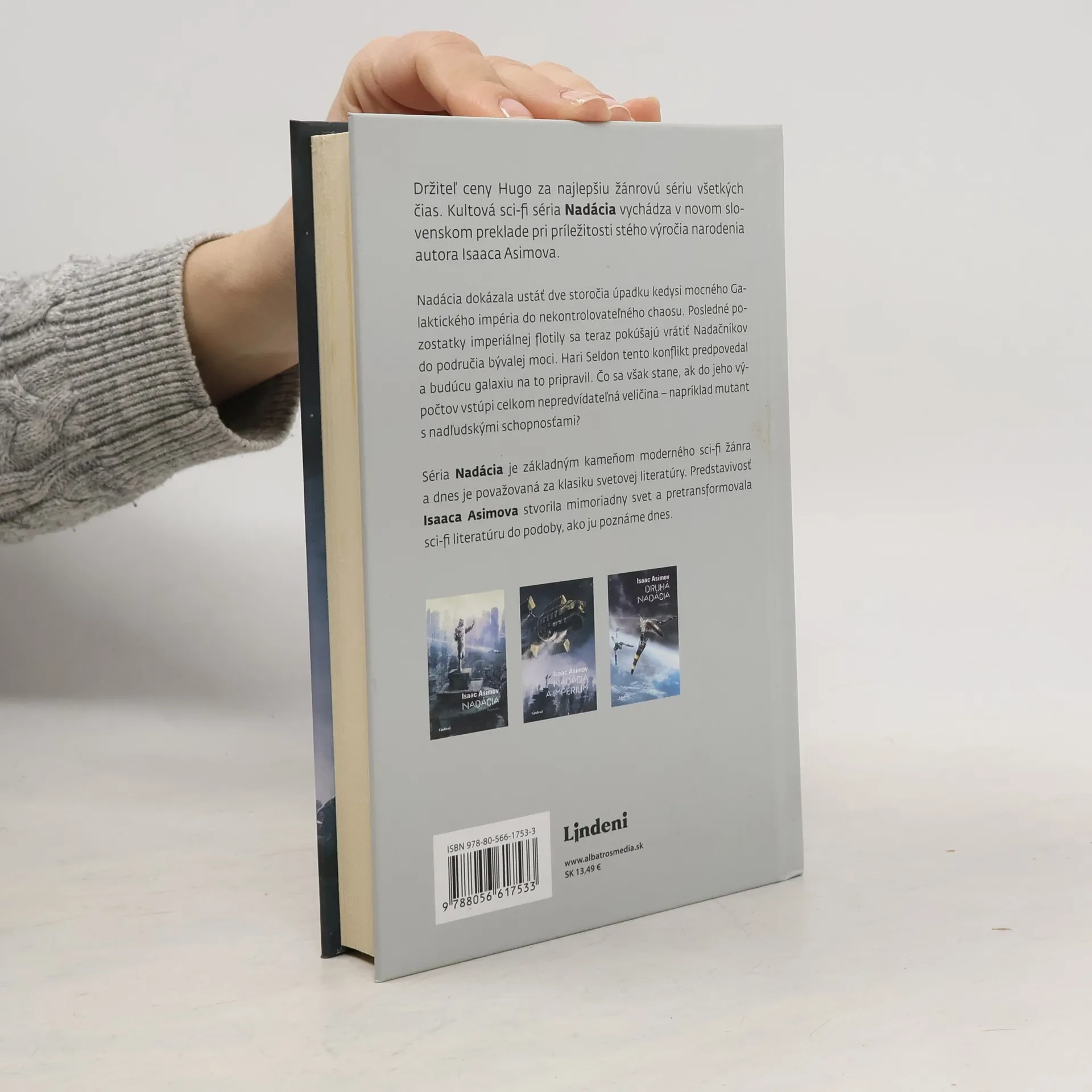 Držiteľ ceny Hugo za najlepšiu žánrovú sériu všetkých čias. Kultová sci-fi séria Nadácia vychádza v novom slovenskom preklade pri príležitosti stého výročia narodenia autora Isaaca Asimova. Nadácia dokázala ustáť dve storočia úpadku kedysi mocného Galaktického impéria do nekontrolovateľného chaosu. Posledné pozostatky imperiálnej flotily sa teraz pokúšajú vrátiť nadačníkov do područia bývalej moci. Hari Seldon tento konflikt predpovedal a budúcu galaxiu na to pripravil. Čo sa však stane, ak do jeho výpočtov vstúpi celkom nepredvídateľná veličina – napríklad mutant s nadľudskými schopnosťami? Séria Nadácia je základným kameňom moderného sci-fi žánra a dnes je považovaná za klasiku svetovej literatúry. Predstavivosť Isaaca Asimova stvorila mimoriadny svet a pretransformovala sci-fi literatúru do podoby, ako ju poznáme dnes.