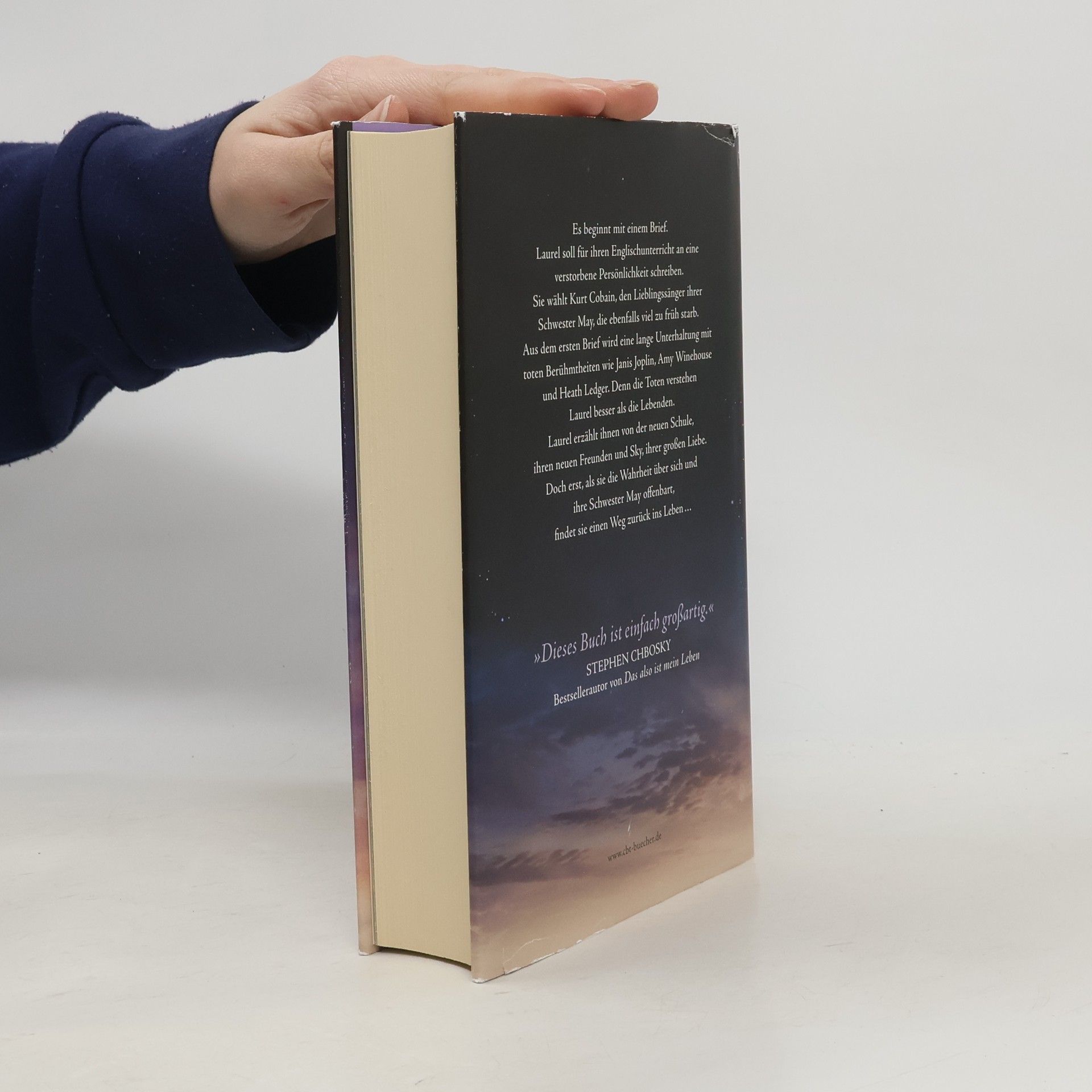 Eine Geschichte voller Liebe und Weisheit: Das beeindruckendste Jugendbuch des JahresEs beginnt mit einem Brief. Laurel soll für ihren Englischunterricht an eine verstorbene Persönlichkeit schreiben. Sie wählt Kurt Cobain, den Lieblingssänger ihrer Schwester May, die ebenfalls viel zu früh starb. Aus dem ersten Brief wird eine lange Unterhaltung mit toten Berühmtheiten wie Janis Joplin, Amy Winehouse und Heath Ledger. Denn die Toten verstehen Laurel besser als die Lebenden. Laurel erzählt ihnen von der neuen Schule, ihren neuen Freunden und Sky, ihrer großen Liebe. Doch erst, als sie die Wahrheit über sich und ihre Schwester May offenbart, findet sie den Weg zurück ins Leben und kann einen letzten Brief an May schreiben …