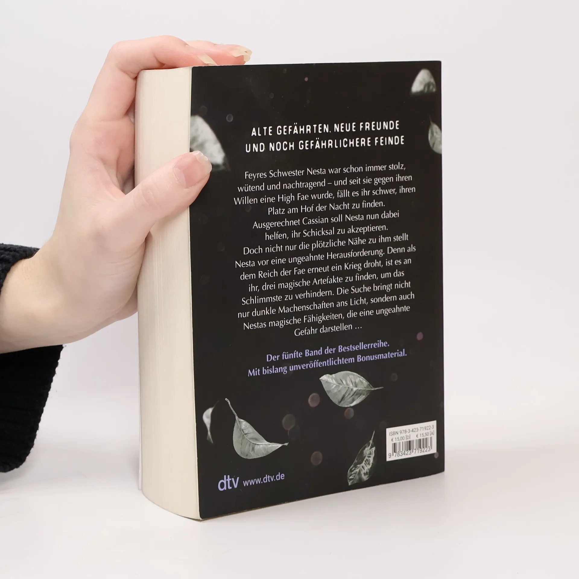 Alte Gefährten, neue Freunde und noch gefährlichere Feinde Das große Fantasy-Epos jetzt endlich im Taschenbuch – mit bisher unveröffentlichtem Bonusmaterial! Feyres Schwester Nesta war schon immer stolz, wütend und nachtragend – und seit sie gegen ihren Willen eine High Fae wurde, fällt es ihr schwer, ihren Platz am Hof der Nacht zu finden. Ausgerechnet Cassian soll Nesta nun dabei helfen, ihr Schicksal zu akzeptieren. Doch die plötzliche Nähe zu ihm stellt Nesta vor eine beinahe unerträgliche Herausforderung, denn noch immer kann und will sie ihren Gefühlen für Cassian nicht nachgeben. Als dem Reich der Fae erneut ein Krieg droht, liegt es an Nesta, drei magische Artefakte zu finden, um das Schlimmste zu verhindern. Doch die Suche bringt nicht nur dunkle Machenschaften ans Licht, sondern auch Nestas magische Fähigkeiten, die eine ungeahnte Gefahr darstellen … Knisterndes Enemies-to-Lovers-Epos mit viel Spice! Alle Bücher der ›Das Reich der sieben Höfe‹-Reihe: Band 1: Dornen und Rosen Band 2: Flammen und Finsternis Band 3: Sterne und Schwerter Band 4: Frost und Mondlicht Band 5: Silbernes Feuer Die Bände sind nicht unabhängig voneinander lesbar. Weitere Reihen von Sarah J. Maas bei dtv: ›Throne of Glass‹ ›Crescent City‹