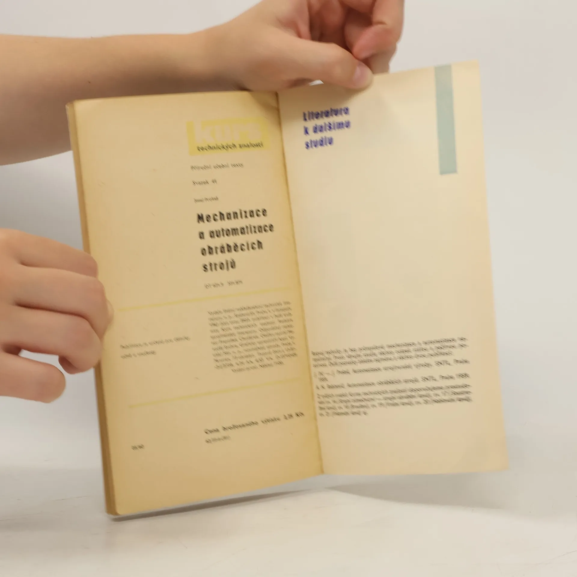 Stručný popis automatizačních systémů, metod a prostředků mechanizace i automatizace jednotlivých mechanismů, přídavných zařízení, programových řízení a automatických výrobních linek. Určeno pro dělníky, učně a studenty, novátory a pracovníky ve strojírenských závodech. Kurs technických znalostí, svazek 41. První vydání.