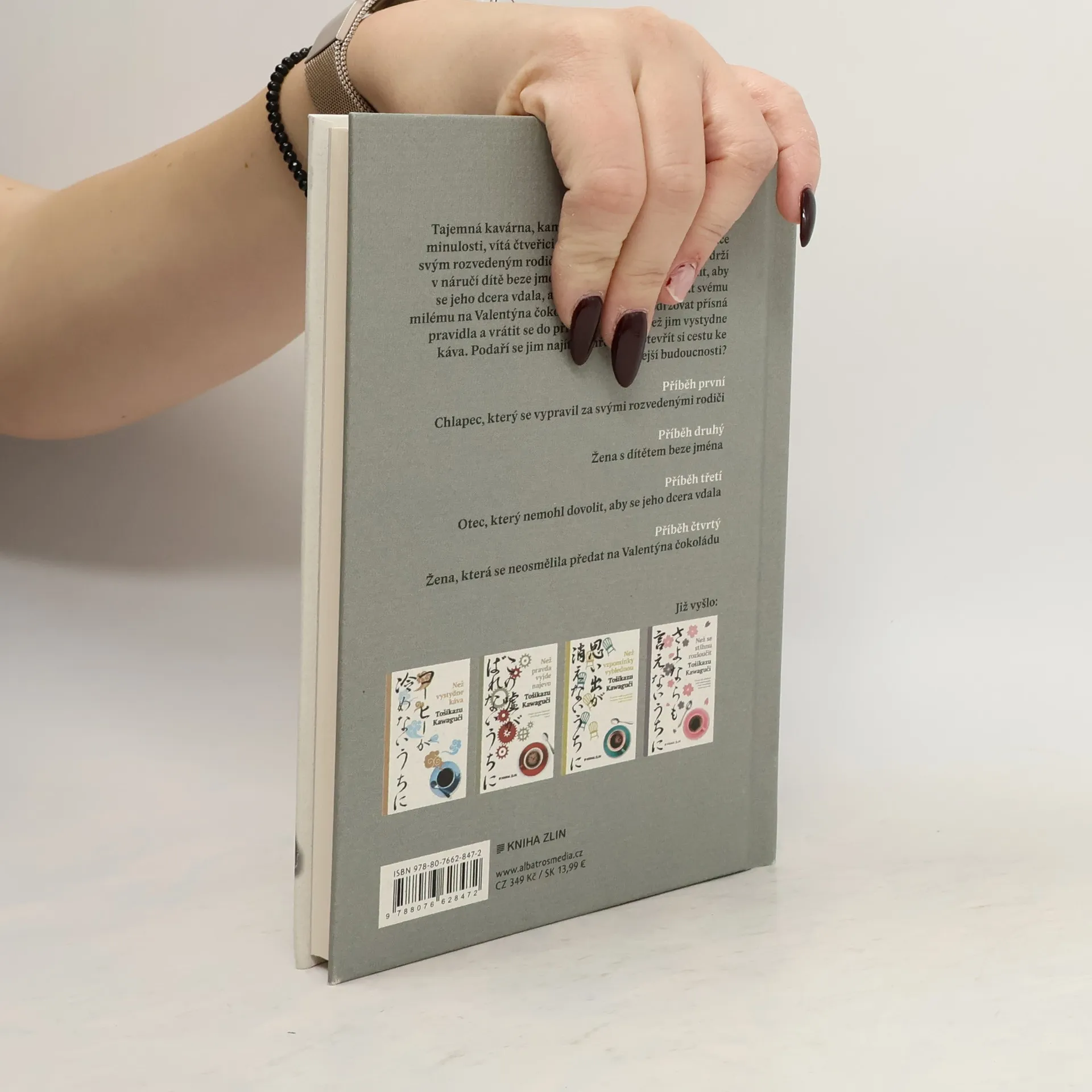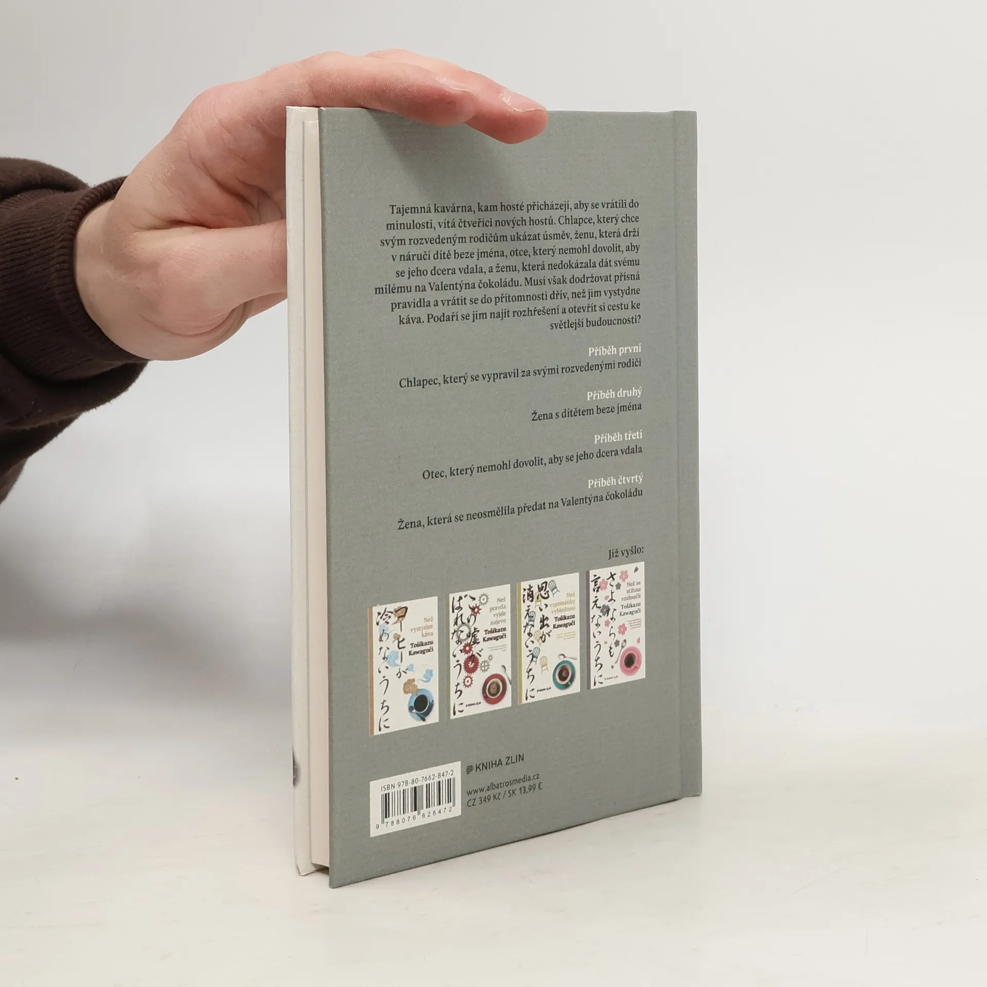 Pátý díl oblíbené série o kavárnách, které umožňují cestovat časem Tajemná kavárna, kam hosté přicházejí, aby se vrátili do minulosti, vítá čtveřici nových hostů. Chlapce, který chce svým rozvedeným rodičům ukázat úsměv, ženu, která drží v náručí dítě beze jména, otce, který nemohl dovolit, aby se jeho dcera vdala, a ženu, která nedokázala dát svému milému na Valentýna čokoládu. Musí však dodržovat přísná pravidla a vrátit se do přítomnosti dřív, než jim vystydne káva. Podaří se jim najít rozhřešení a otevřít si cestu ke světlejší budoucnosti? „V kavárně v jedné nejmenované čtvrti mají místo, o němž koluje podivná novodobá legenda. Když na ně usednete, můžete se vrátit v čase do doby, kterou si zvolíte. Musíte však přijmout několik nepříjemných, opravdu nepříjemných pravidel. Přesto přicházejí do kavárny stále další lidé, kteří se o této legendě doslechli.“
