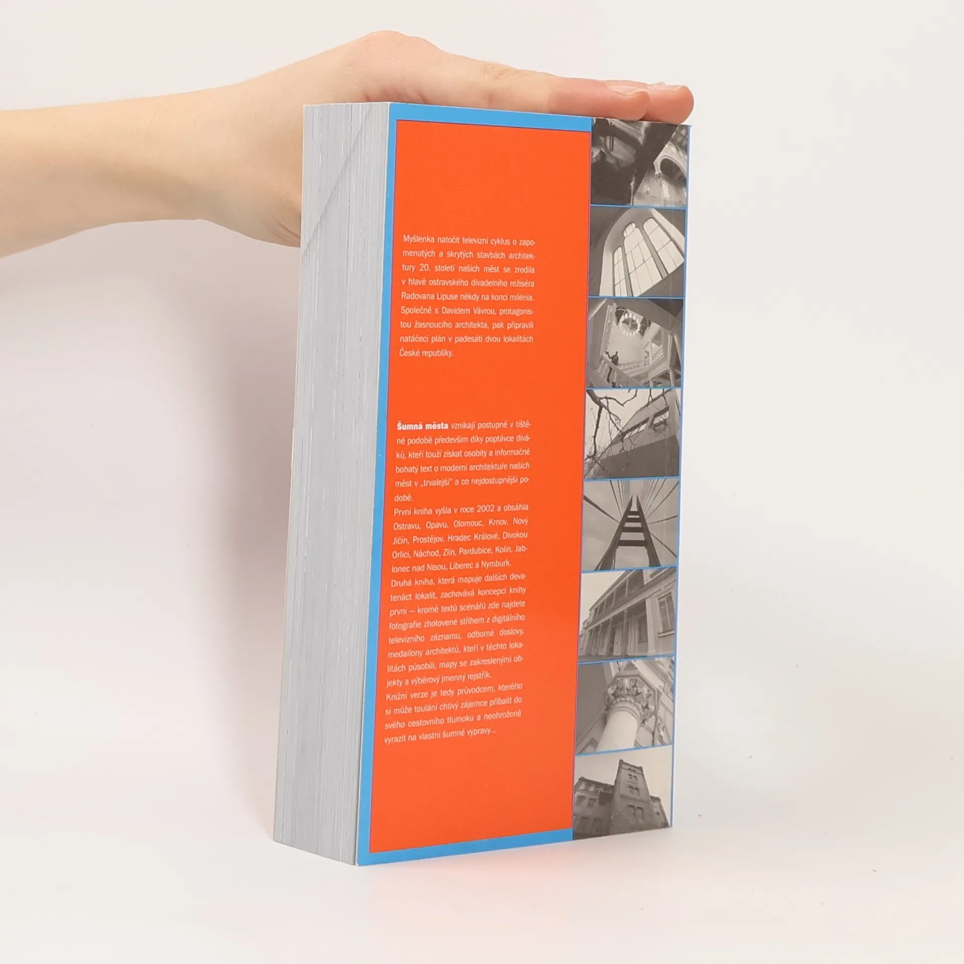 Myšlenka natočit televizní cyklus o zapomenutých a skrytých stavbách architektury 20. století se zrodila v hlavě ostravského divadelního režiséra Radovana Lipuse na konci milénia. Společně s Davidem Vávrou připravili natáčecí plán v padesáti dvou lokalitách České republiky. Projekt vzniká v tištěné podobě díky poptávce diváků po osobitém a informačně bohatém textu o moderní architektuře. První kniha vyšla v roce 2002 a zahrnovala města jako Ostrava, Opava, Olomouc a další. Druhá kniha mapuje dalších devatenáct lokalit a zachovává koncepci první — obsahuje texty scénářů, fotografie, odborné doslovy, medailony architektů, mapy a rejstřík. Knižní verze slouží jako průvodce pro zájemce o architekturu, kteří chtějí vyrazit na vlastní výpravy. Místa zastoupená v knize zahrnují Špindlerův Mlýn, Těšín, Karvinsko, Radhošť, Frýdek-Místek, Teplice, Ústí nad Labem, Hranice, Most, Litvínov, Mladou Boleslav, České Budějovice, Karlovy Vary, Český ráj, Kladno, Louny, Pelhřimov, Humpolec, Šumperk, Poděbrady a Děčín.